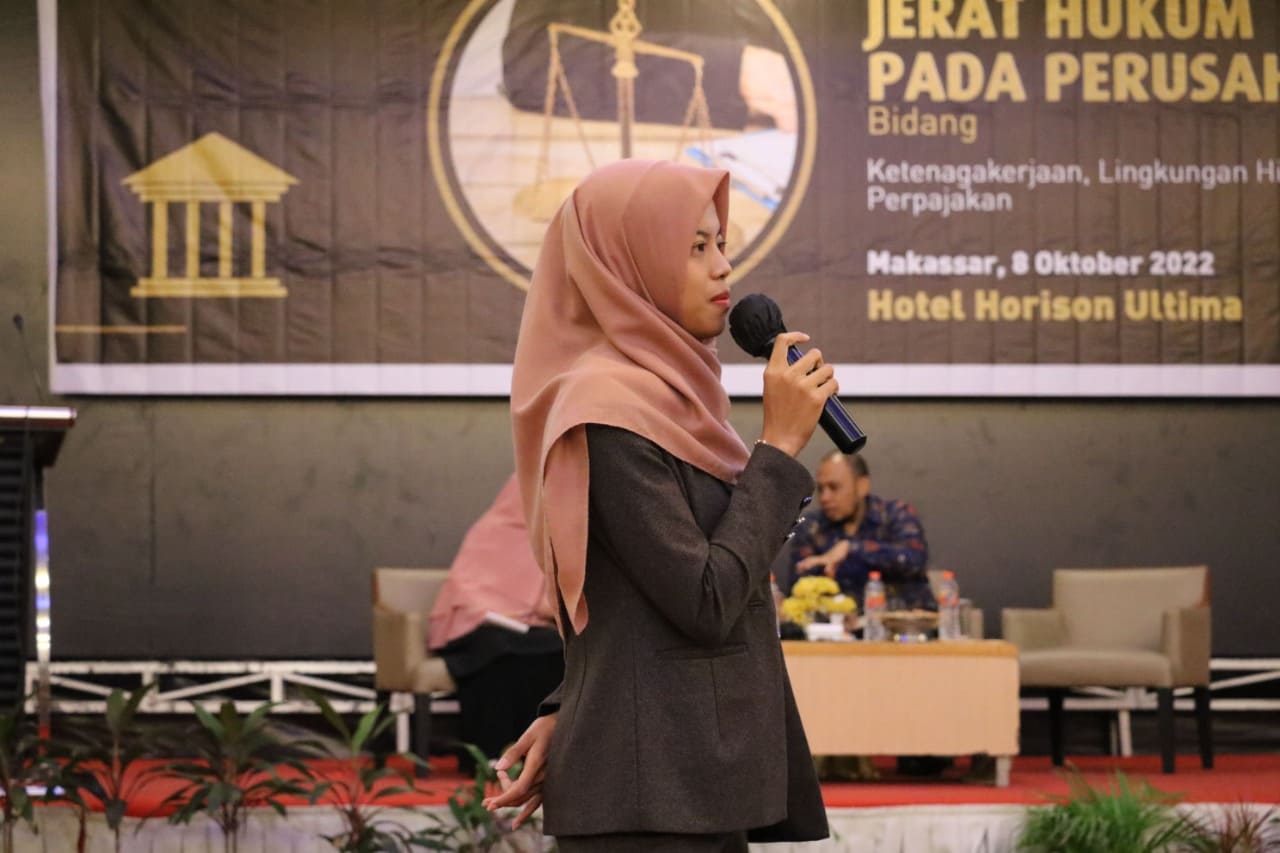 Pada kunjungan workshop kali ini, Lakshita Putri selaku Asisten Penyuluh KPP Pratama Makassar Barat menyampaikan materi sosialisasi dengan pemenuhan kewajiban perpajakan bagi orang pribadi maupun badan. Selain itu terdapat pula narasumber dari Ketua Apindo dan perwakilan Kementerian Lingkungan Hidup.