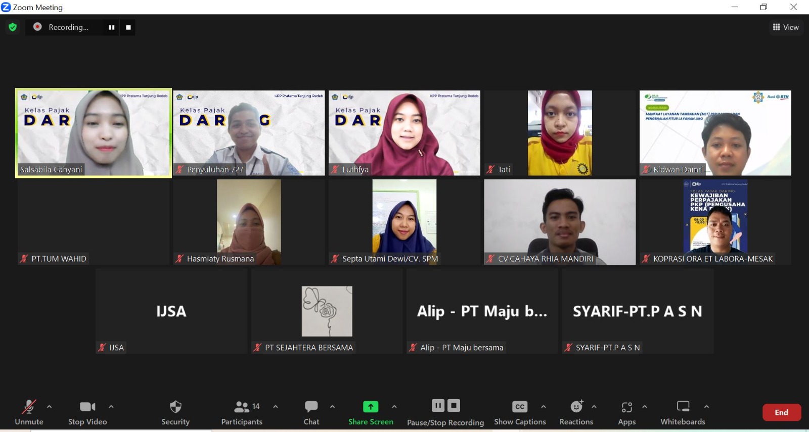 Penyuluh Pajak Kantor Pelayanan Pajak (KPP) Pratama Tanjung Redeb menyelenggarakan kegiatan edukasi perpajakan mengenai Peraturan Menteri Keuangan (PMK) Nomor 66 tahun 2023 tentang perlakuan Pajak Penghasilan atas penggantian atau imbalan sehubungan dengan pekerjaan atau jasa dalam bentuk natura dan/atau kenikmatan. Kegiatan edukasi perpajakan ini diselenggarakan secara daring melalui aplikasi Zoom Meeting di KPP Pratama Tanjung Redeb, Jalan Jenderal Sudirman No 104, Tarakan Tengah, Kota Tarakan, Kalimantan Utara (Senin, 21/8).