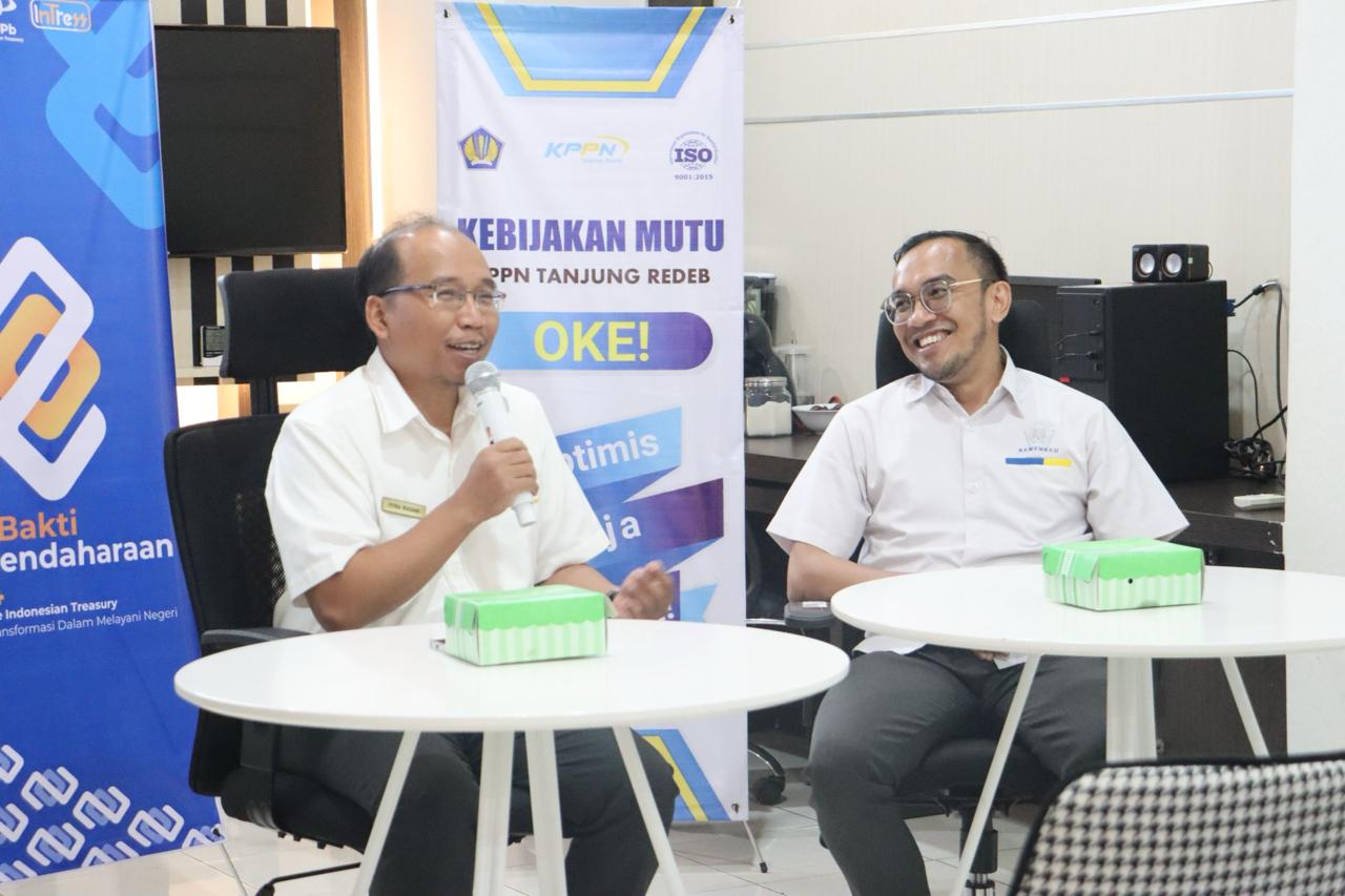 Pelaksana Tugas KPPN Tipe A2 Tanjung Redeb Fitra Riadian juga mengungkapkan bahwa dalam menjalankan kualitas pelayanan yang bebas dari korupsi, segenap pimpinan dan pegawai Kemenkeu Satu Tanjung Redeb berkomitmen untuk bersinergi agar dapat mewujudkan pelayanan yang OKE (Optimis, Kerja, dan Excellent). Tak hanya itu, Zulkifli dan Fitra juga mengungkapkan bahwa segala jenis pelayanan yang diberikan Kemenkeu kepada masyarakat adalah gratis atau tanpa biaya (0 Rupiah).