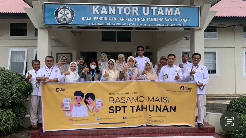 Kantor Pelayanan Penyuluhan dan Konsultasi Perpajakan (KP2KP) Sawahlunto melakukan kegiatan Basamo Maisi Surat Pemberitahuan (SPT) Tahunan dan Pemadanan Nomor Induk Kependudukan (NIK) menjadi Nomor Pokok Wajib Pajak (NPWP) di Balai Pendidikan Pelatihan Tambang (BPPT) Bawah Tanah Kota Sawahlunto (Kamis, 26/1). Kegiatan ini dilakukan kepada seluruh pegawai di Balai Pendidikan dan Pelatihan Tambang tersebut.