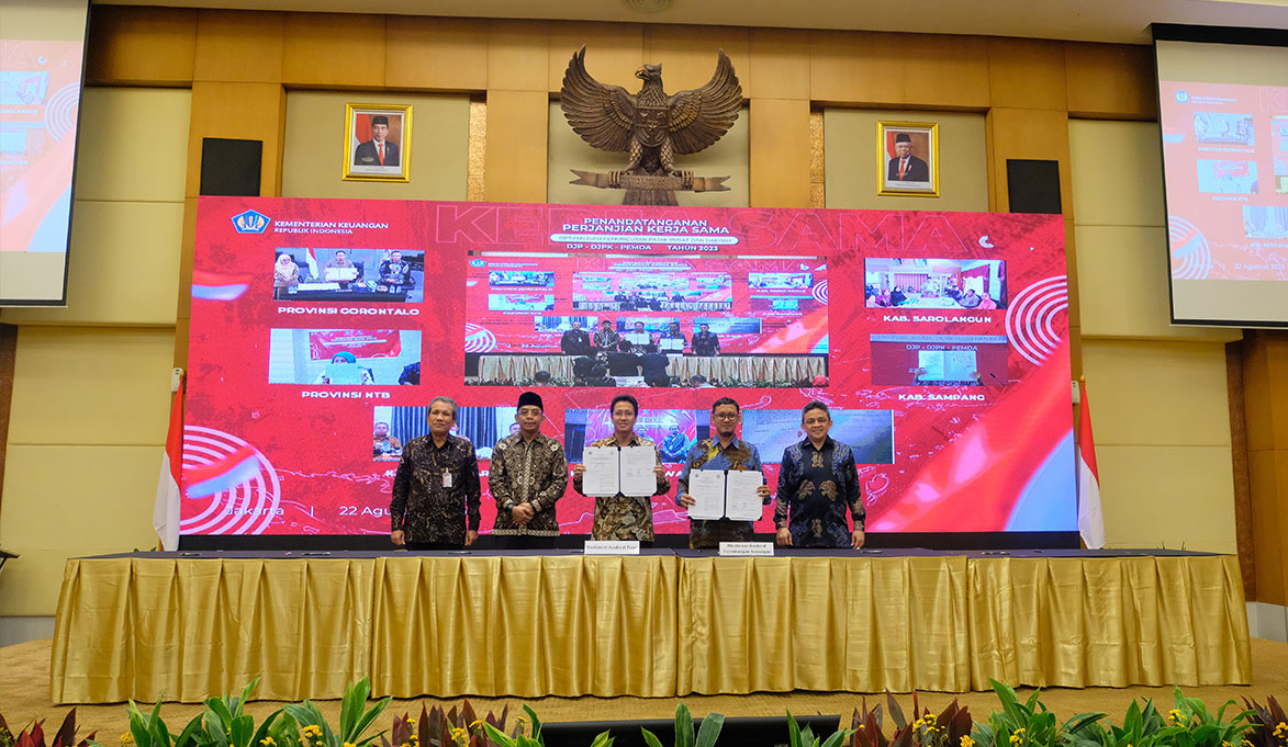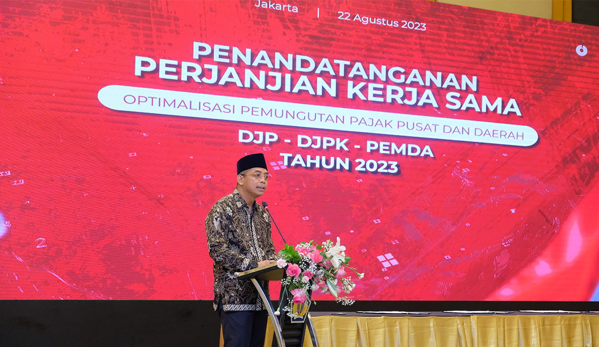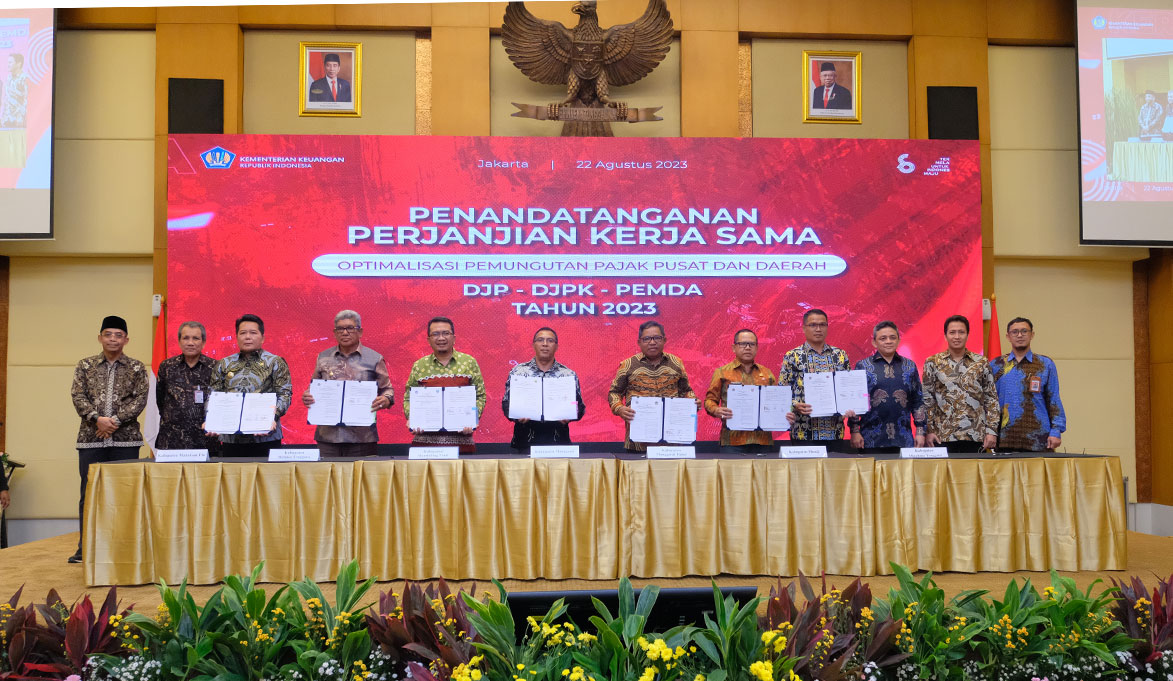 Direktorat Jenderal Pajak (DJP) dan Direktorat Jenderal Perimbangan Keuangan (DJPK) bersinergi dengan pemerintah daerah (Pemda) melalui penandatanganan Perjanjian Kerja Sama (PKS) di Aula Cakti Buddhi Bhakti Gedung Mar’ie Muhammad Kantor Pusat Direktorat Jenderal Pajak, Jakarta (Selasa, 22/8).