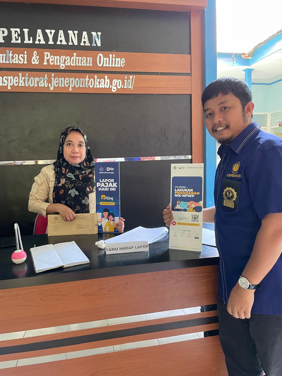 Kantor Pelayanan Penyuluhan dan Konsultasi Perpajakan (KP2KP) Bontosunggu melakukan kunjungan ke Inspektorat Kabupaten Jeneponto (Rabu, 6/3). Tujuan dari kunjungan ini adalah untuk membangun sinergi antara kedua instansi dalam memastikan kepatuhan pajak di wilayah Kabupaten Jeneponto.