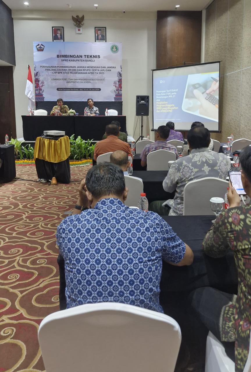 Tim Kantor Pelayanan, Penyuluhan, dan Konsultasi Perpajakan (KP2KP) Ubud bersama Tim Kantor Pelayanan Pajak (KPP) Pratama Gianyar melaksanakan sosialisasi kepada anggota DPRD Kabupaten Bangli dalam acara Bimbingan Teknis DPRD Kabupaten Bangli dengan tema Penyusunan Pembangunan Jangka Menengah dan Jangka Panjang Daerah (RPJMD dan RPJPD) serta LKPJ dan LHP BPK atas Pelaksanaan APBD TA 2023 yang bertempat di Hotel Swissbel Rainforest, Bali (Selasa, 18/6).