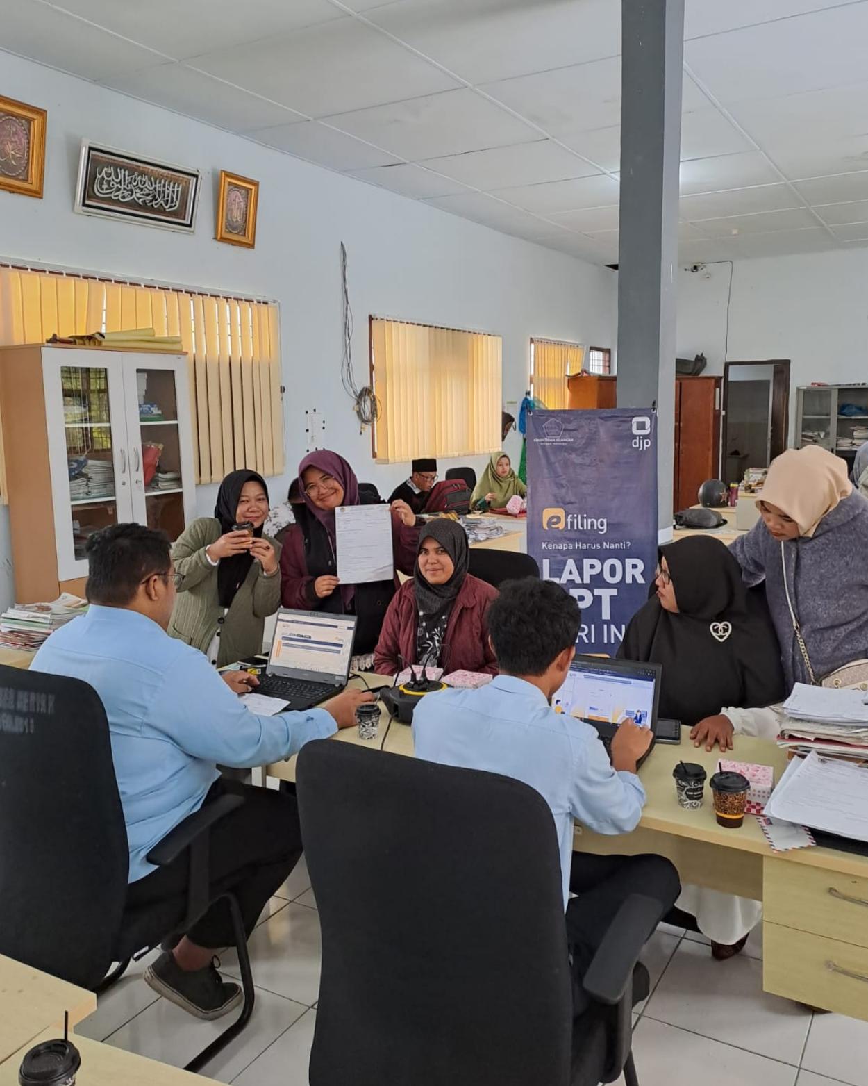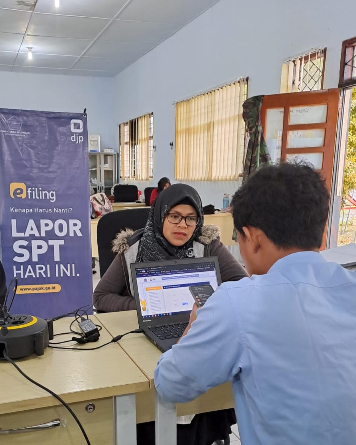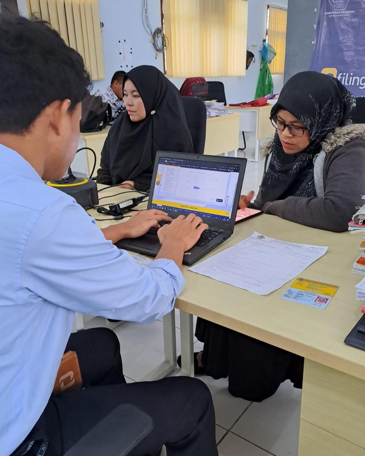 “Batas lapor SPT Tahunan bagi wajib pajak orang pribadi adalah 31 Maret sehingga kami datang ke sini untuk membantu pelaporan SPT Tahunan dan pemadanan NIK menjadi NPWP,” ujar Rimba Prasasti di hadapan para guru dan pegawai SMK Negeri 1 Bener Meriah. Asistensi pelaporan SPT Tahunan dilakukan oleh Rifqi Chorinando dan M Padli Azizi Rafles selaku pegawai KP2KP Rimba Raya.