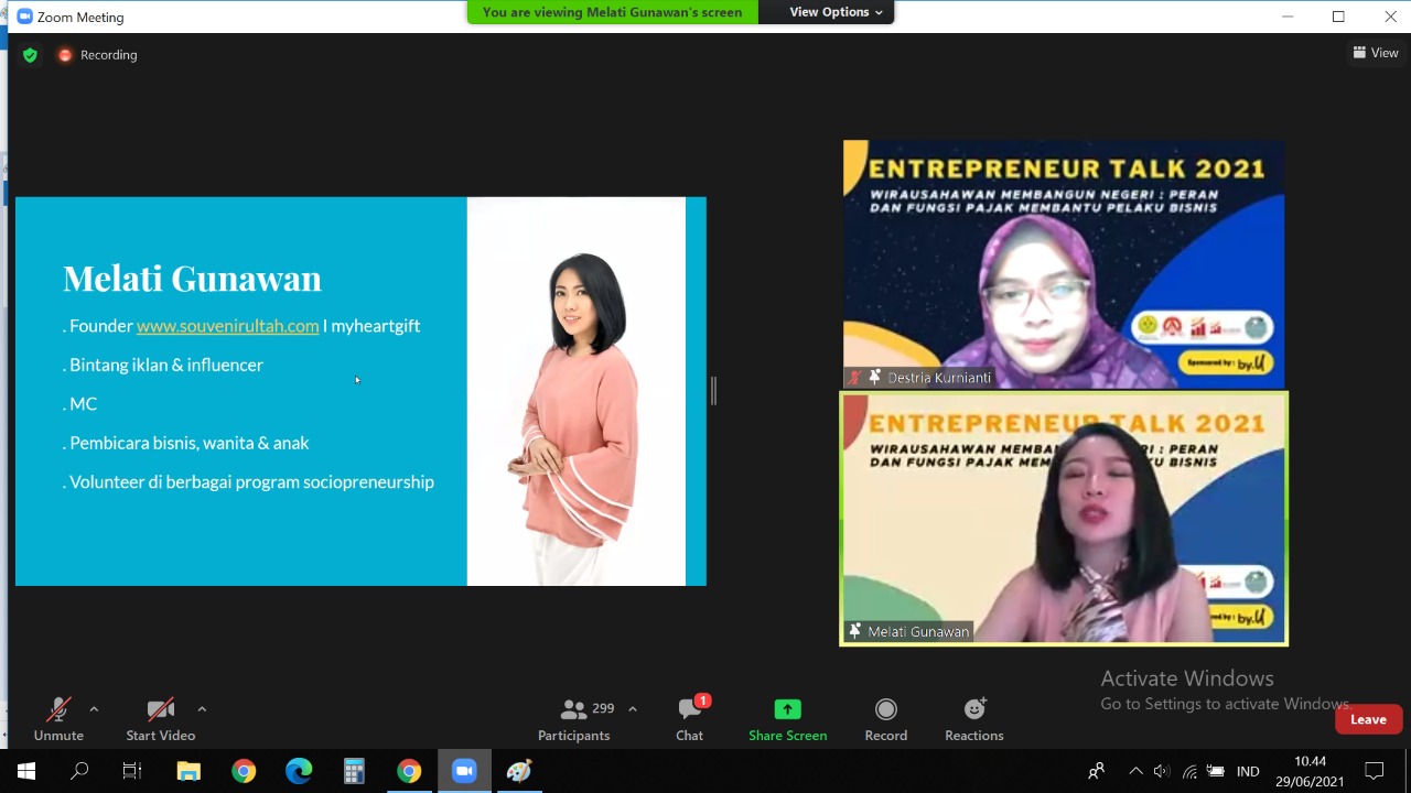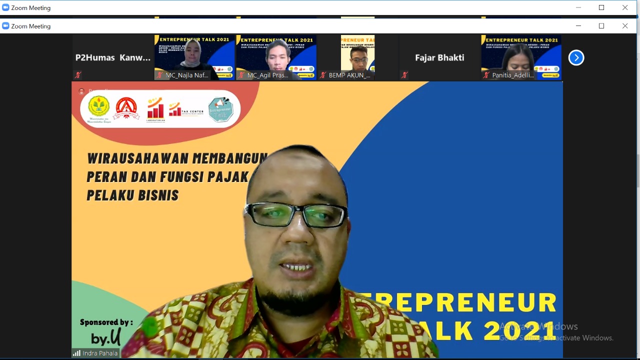 Universitas Negeri Jakarta (UNJ) bekerja sama dengan Kantor Wilayah DJP Jakarta Timur menyelenggarakan kegiatan Entrepreneur Talk (Entalk) 2021 dengan tema “Wirausahawan Membangun Negeri: Peran dan Fungsi Pajak Membantu Pelaku Bisnis” secara daring di Jakarta Timur (Selasa, 29/06).