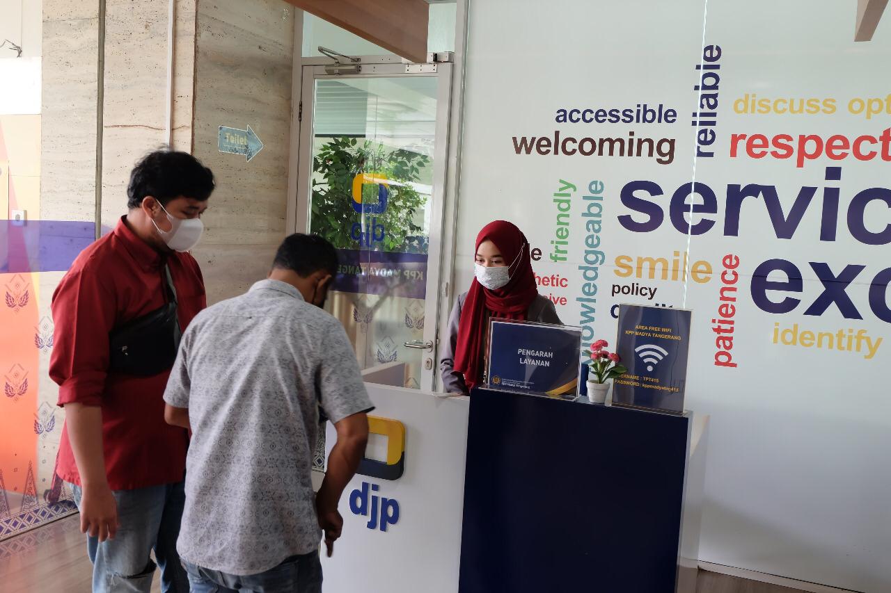 Tempat Pelayanan Terpadu (TPT) Kantor Pelayanan Pajak (KPP) Madya Tangerang dipadati oleh wajib pajak yang akan melaporkan SPT Tahunan Orang Pribadi di Tangerang (Rabu, 31/3). Mengingat 31 Maret 2021 merupakan batas akhir pelaporan SPT Tahunan Pajak Penghasilan (PPh) untuk Wajib Pajak Orang Pribadi.