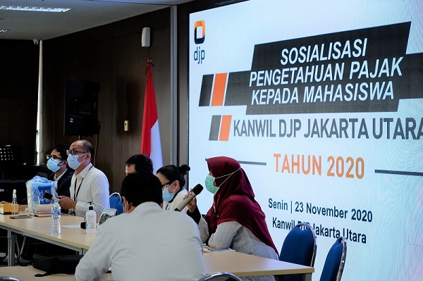 Untuk meningkatkan kesadaran pajak melalui edukasi kepada pelajar, Kanwil DJP Jakarta Utara mengadakan Sosialisasi Pengetahuan Pajak kepada mahasiswa di aula kanwil secara daring (Senin, 23/11).
