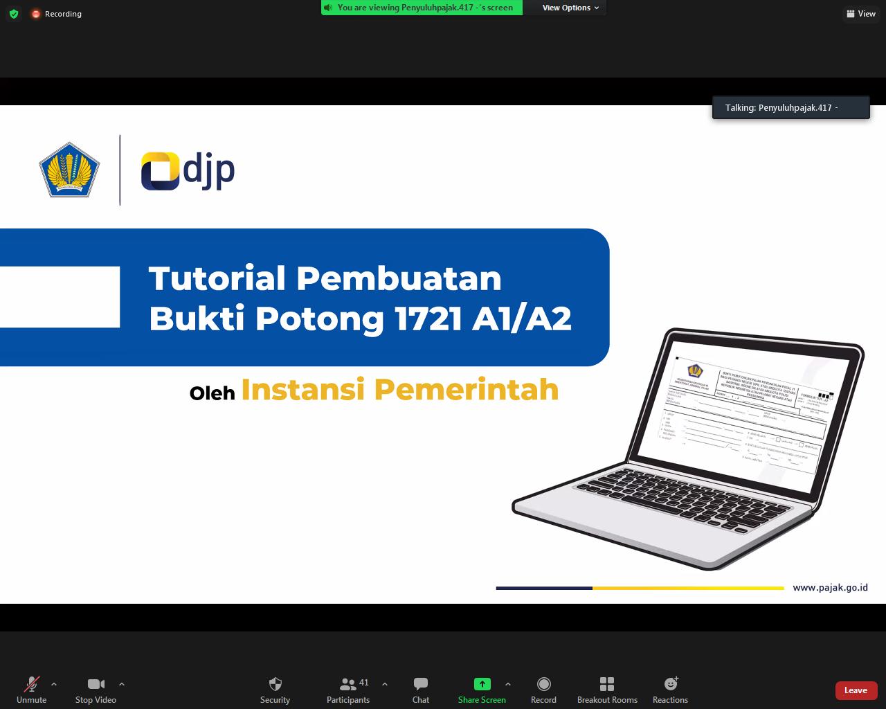 Bendahara instansi pemerintah di wilayah Kota Cilegon mengikuti kelas pajak pembuatan bukti potong 1721 yang diselenggarakan oleh Kantor Pelayanan Pajak (KPP) Pratama Cilegon melalui aplikasi Zoom Meeting, Cilegon (Kamis, 13/01).