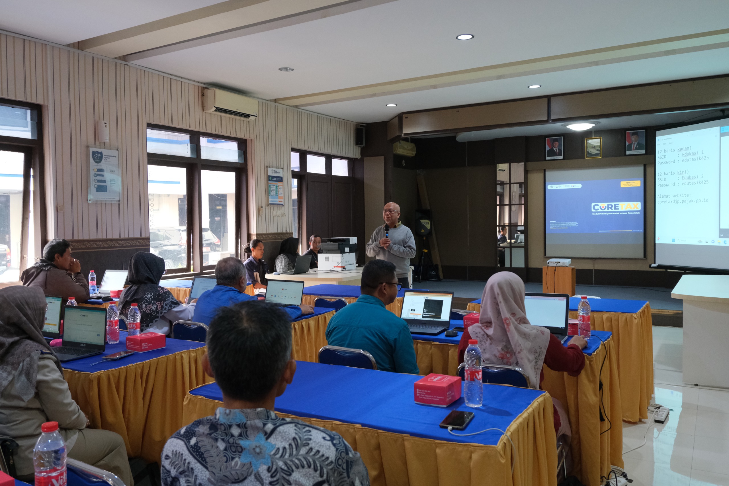 Materi yang disampaikan antara lain tata cara registrasi ke akun Coretax DJP, pembuatan e-Bupot, pembayaran pajak melalui Deposit Pajak, sampai dengan pelaporan SPT Masa Unifikasi.