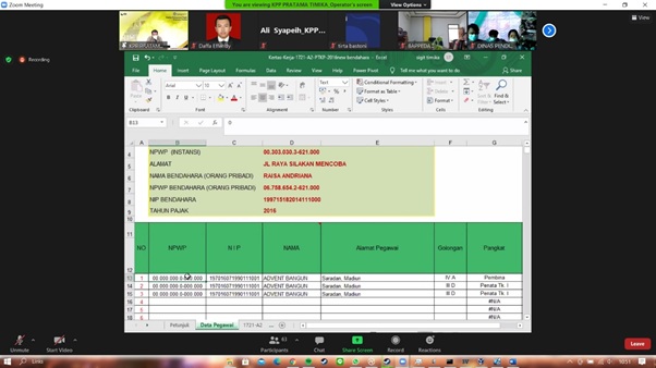 Kantor Pelayanan Pajak (KPP) Pratama Timika mengadakan sosialisasi secara daring menggunakan aplikasi zoom meeting dengan tajuk "Sosialisasi PMK 231 Tahun 2019 terkait Kewajiban Perpajakan Instansi Pemerintah" di Ruangan Kelas Pajak Online KPP Pratama Timika Lantai 4, Kabupaten Mimika, Papua (Kamis, 25/2).