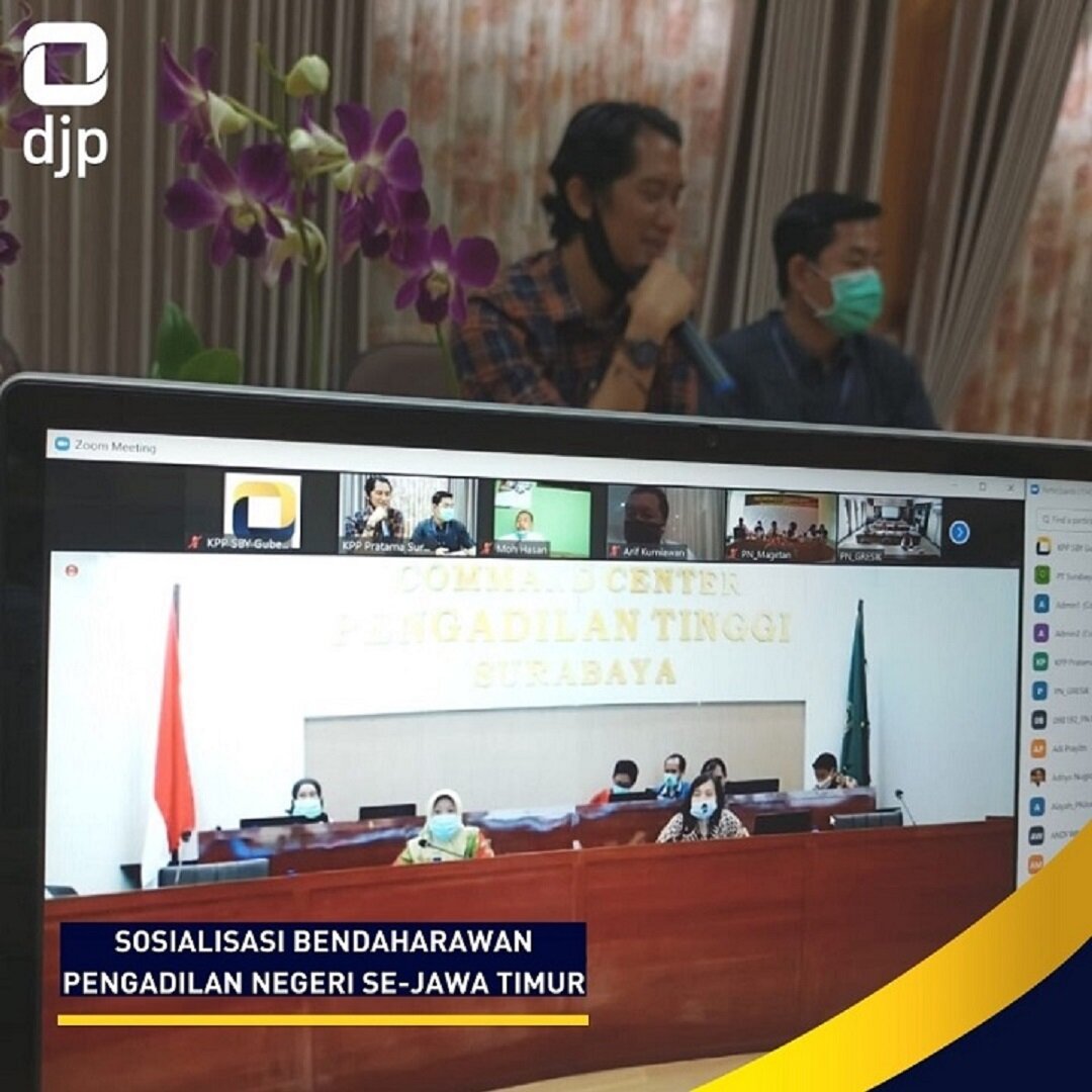 Kantor Pelayanan Pajak (KPP) Pratama Surabaya Gubeng bekerja sama dengan Pengadilan Tinggi Jawa Timur menyelenggarakan kegiatan Sosialisasi Kewajiban Perpajakan bagi Bendahara Pemerintah secara daring di Surabaya (Kamis, 26/11). Kegiatan ini diikuti oleh seluruh Bendahara Pengadilan Negeri di wilayah Provinsi Jawa Timur.