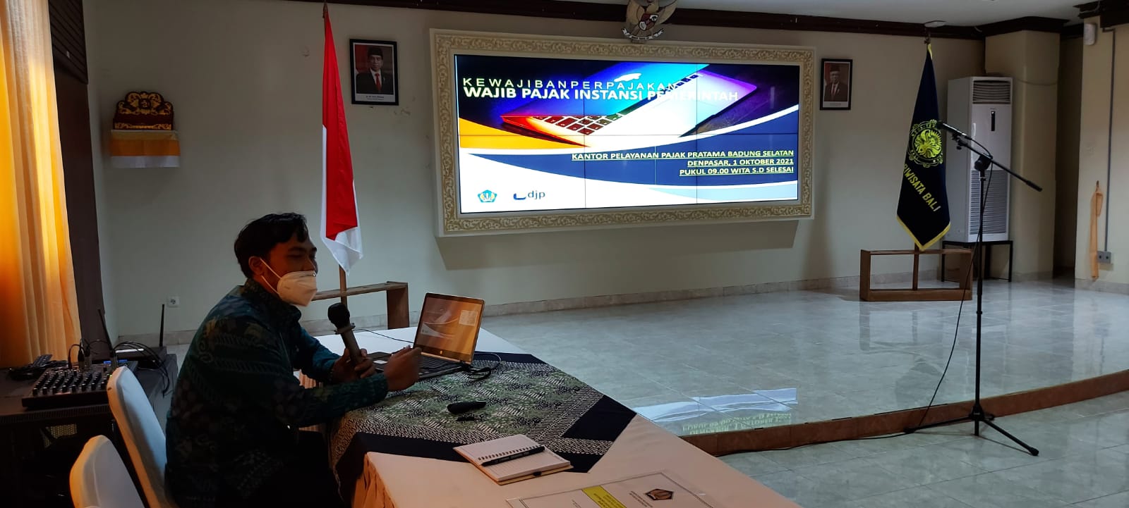 Kantor Pelayanan Pajak (KPP) Pratama Badung Selatan menyelenggarakan kegiatan edukasi perpajakan tentang peraturan terbaru serta kewajiban perpajakan instansi pemerintah sebagai pemungut dan pemotong pajak dana APBN secara tatap muka (luring) di Ruang Genitri, Kampus Politeknik Pariwisata Bali (Jumat, 1/10). Kegiatan tersebut dihadiri oleh Fungsional Penyuluh Pajak, Kasubbag Administrasi Keuangan, Kabag Administrasi Umum, PPK 52, 53 dan Staf, Bendahara Pengeluaran dan Staf, Pejabat Pengadaan dan Staf, dan Staf Keuangan.