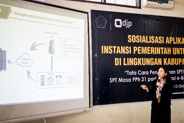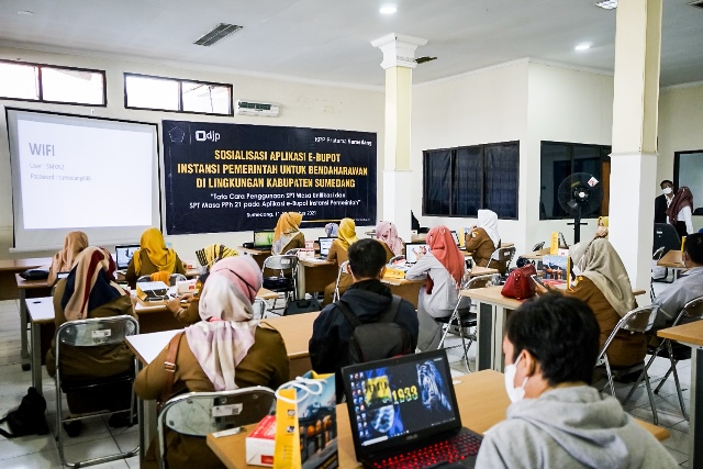 Kantor Pelayanan Pajak (KPP) Pratama Sumedang menggelar sosialisasi aplikasi e-Bupot Instansi Pemerintah untuk Bendahara Satuan Kerja Pemerintah Daerah (SKPD) Kabupaten Sumedang (Senin, 11/10).