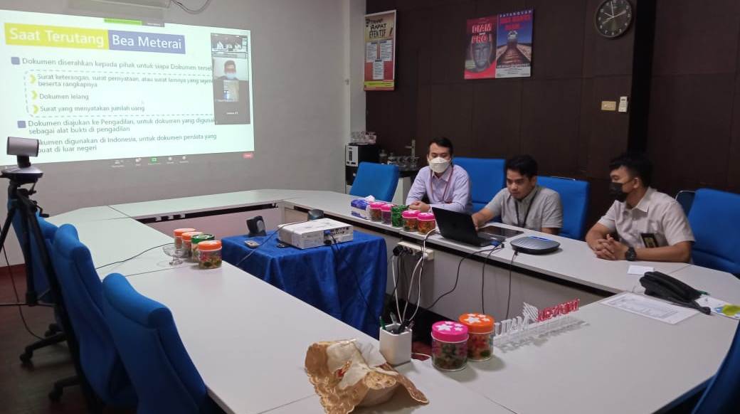 Narasumber kegiatan, Boby Kurniawan menjelaskan bahwa bea meterai merupakan pajak atas dokumen. "Kami sebagai tim fungsional penyuluh harus memberikan edukasi perpajakan, termasuk kepada para bendaharawan mengenai pengertian, objek, tarif, pembayaran, sanksi, dan ketentuan peralihan bea meterai sesuai Undang-Undang Nomor 10 Tahun 2020," tegas Boby.
