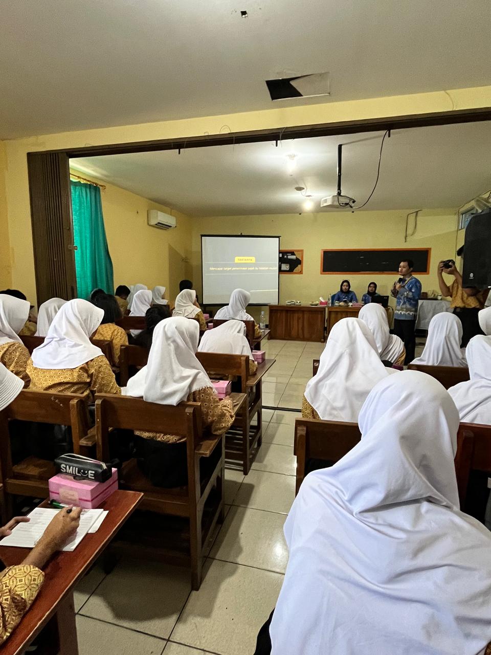 Sebanyak 60 orang siswa mengikuti kegiatan dan menyimak pemaparan materi yang disampaikan oleh Fungsional Penyuluh Pajak Yudho Risnanto. Materi yang disampaikan mengenai peran dan fungsi pajak dalam kontribusinya terdahap penerimaan negara dan peran serta siswa dalam mendukung pembangunan nasional.