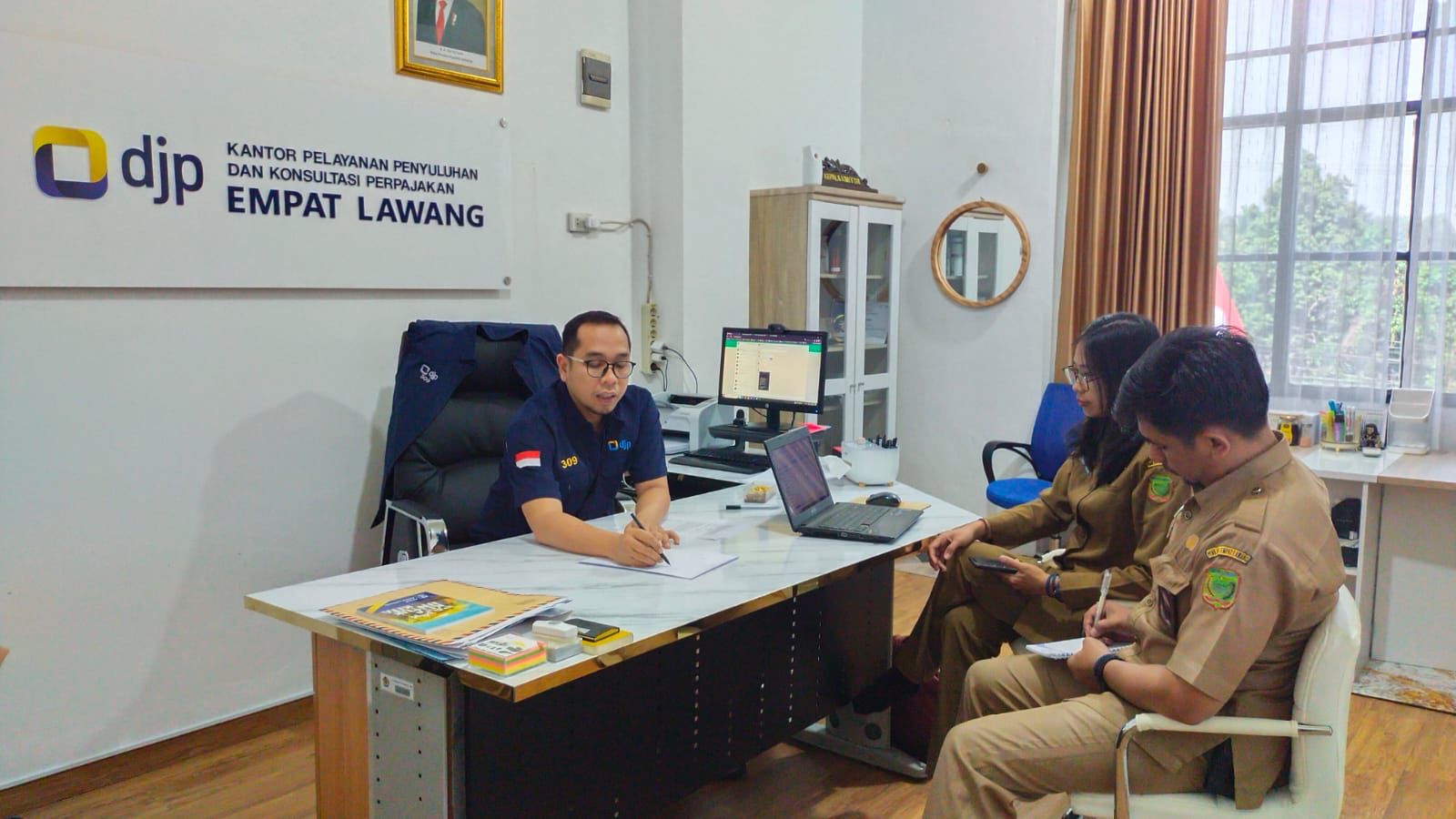 Kantor Pelayanan Penyuluhan dan Konsultasi Perpajakan (KP2KP) Empat Lawang melaksanakan Bimbingan Teknis (Bimtek) Pemotongan Pajak Penghasilan (PPh) Pasal 21 khusus Dokter non pegawai RSUD bersama pegawai Inspektorat Kabupaten Empat Lawang di ruang kepala kantor KP2KP Empat Lawang, Empat Lawang, Sumatera Selatan (Selasa, 17/10).