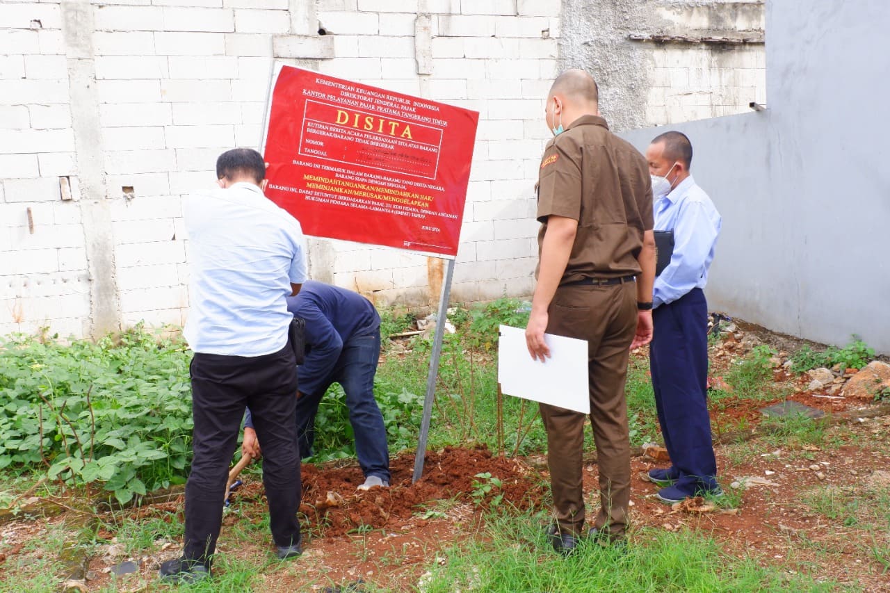 Kantor Pelayanan Pajak (KPP) Pratama Tangerang Timur melalui Juru Sita Pajak Negara (JSPN) melakukan penyitaan terhadap properti milik Penanggung Pajak bekerja sama dengan pejabat wilayah setempat dan juga pihak keamanan. Penyitaan bertempat di lokasi Wajib Pajak, Kota Tangerang (Rabu, 8/6).