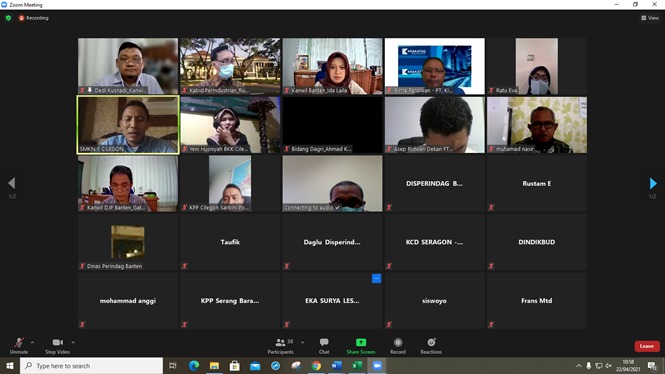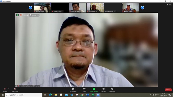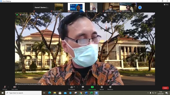 Tim Penyuluh Kanwil DJP Banten mengisi acara Diseminasi Peraturan Daerah RPIP Banten Implementasi RPIP Tahap I Tahun 2021 - 2024 yang diselenggarakan oleh Dinas Perindustrian dan Perdagangan (Disperindag) Provinsi Banten secara daring melalui media Zoom dari Ruang P2Humas Kanwil DJP Banten, Serang (Kamis, 22/4).