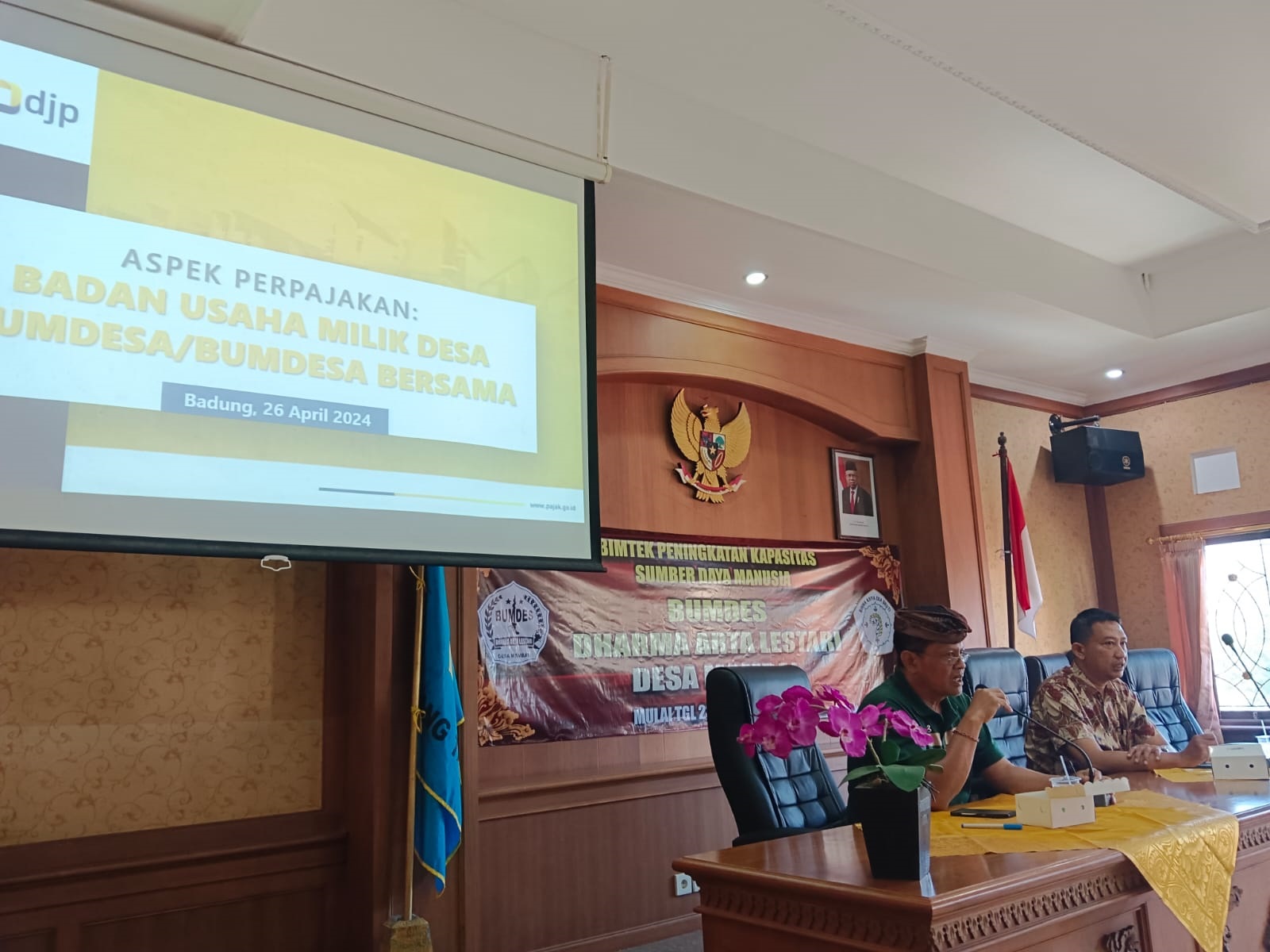 Kantor Pelayanan Pajak (KPP) Pratama Badung Utara memberikan edukasi terkait hak dan kewajiban perpajakan Badan Usaha Milik Desa (BUMDES) di Desa Mambal, Kecamatan Abiansemal, Kabupaten Badung, Bali (Kamis, 25/7). Kegiatan tersebut diinisiasi langsung oleh Pemerintah Desa Mambal untuk meningkatkan kapasitas Sumber Daya Manusia yang mengelola BUMDES di desa tersebut yang bernama Dharma Artha Lestari. Sosialisasi perpajakan ini dikemas dalam bentuk bimbingan teknis sehingga banyak dilakukan praktek langsung menggunakan aplikasi untuk memberikan pemahaman yang lebih baik.