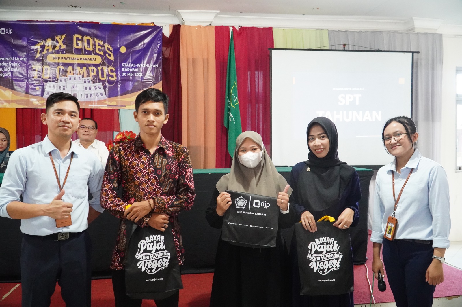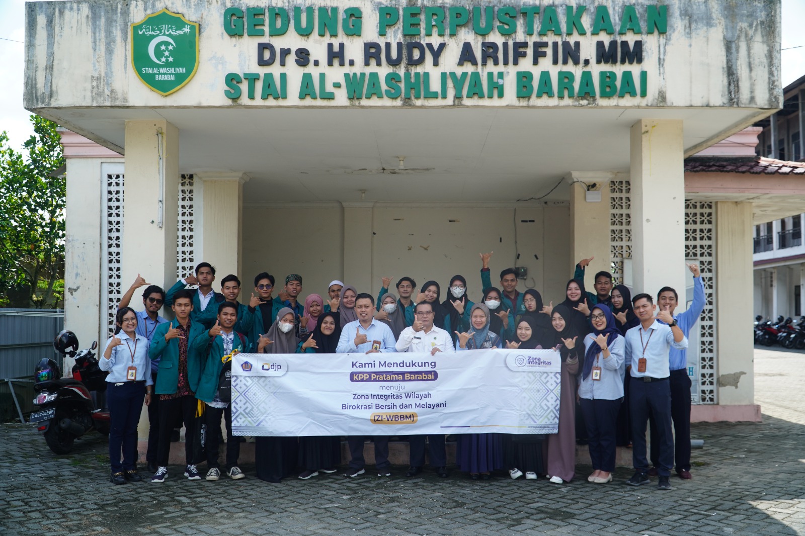 KPP Pratama Barabai bekerja sama STAI Al-Washliyah Barabai dalam mengadakan Tax Goes to Campus di Aula STAI Al-Washliyah Barabai, Kabupaten Hulu Sungai Tengah (Selasa, 30/5). Acara yang memiliki tema "Generasi Sadar Pajak, Wujud Bela Negara" ini dihadiri oleh 25 orang mahasiswa.