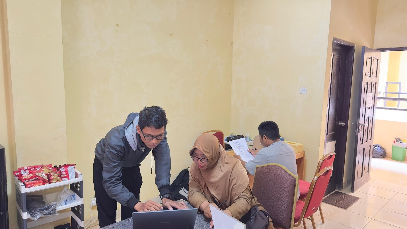 Bendahara Dinas Transmigrasi Pemerintah Kabupaten Tana Tidung melakukan konsultasi dengan Petugas Pajak Kantor Pelayanan Pajak (KPP) Pratama Tanjung Redeb di Pos Pelayanan Pajak Tana Tidung yang terletak di Kecamatan Sesayap, Kabupaten Tana Tidung (Selasa, 16/1). Konsultasi dilakukan lantaran terdapat kendala dalam rangka pembuatan bukti potong khususnya untuk pegawai yang baru masuk di tahun berjalan.