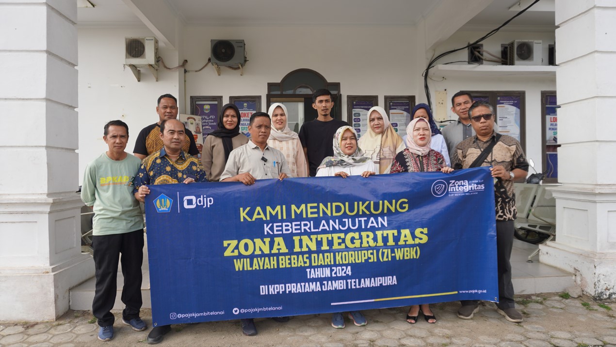 Kantor Pelayanan Pajak (KPP) Pratama Jambi Telanaipura mendapat dukungan penuh dari Badan Pengelolaan Keuangan & Aset Daerah (BPKAD) Kabupaten Muaro Jambi dalam upaya melanjutkan Zona Integritas menuju Wilayah Bebas dari Korupsi (ZI-WBK) saat melakukan kunjungan kerja ke BPKAD Muaro Jambi (Jumat, 28/6).