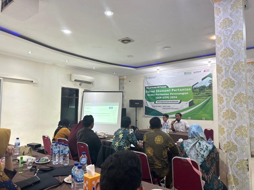 Kantor Pelayanan, Penyuluhan, dan Konsultasi (KP2KP) Nunukan menghadiri undangan Badan Pusat Statistik (BPS) Nunukan di Aula Pertemuan Hotel Lenfin, Nunukan Timur, Kecamatan Nunukan, Kabupaten Nunukan (Senin, 27/5). Undangan ini dalam rangka menjadi narasumber pada salah satu rangkaian acara Survei Ekonomi Pertanian Usaha Pertanian Perorangan (SEP-UTP). Acara tersebut berlangsung selama empat hari hingga 30 Mei 2024. Peserta acara ini merupakan pemilik usaha pertanian perorangan yang berasal dari Nunukan, Sebatik, Krayan, Lumbis, Sebuku, dan Sembakung.