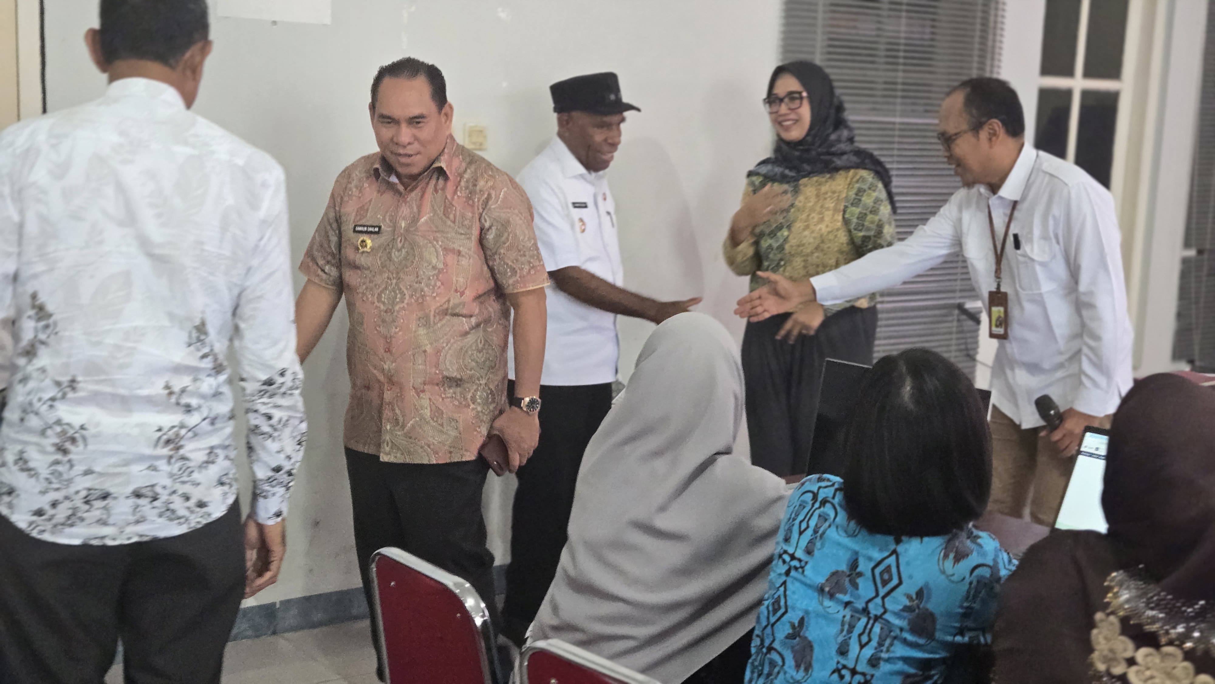 Samaun didampingi oleh Wakil Bupati Fakfak, Donatus Nimbitkendik, serta Kepala BPKAD, Tajudin La Jahalia, menyempatkan diri untuk mengunjungi kegiatan tersebut di sela-sela agenda kegiatan yang sedang dilakukan di BPKAD.