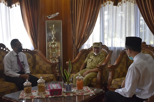 Bupati Kerinci Adirozal mendapat kunjungan kerja dan silaturahmi dari Kepala Kantor Pelayanan Pajak (KPP) Pratama Bangko Teguh Hadi Wardoyo didampingi oleh Kepala Kantor Pelayanan Penyuluhan dan Konsultasi Perpajakan (KP2KP) Sungai Penuh Aris Affandi di Kantor Bupati Kerinci, Sungai Penuh (Senin,1/3). Dalam kunjungan tersebut Kepala KPP Pratama Bangko memberikan apresiasi kepada Bupati Kerinci karena telah melakukan pelaporan SPT Tahunan tahun pajak 2020.