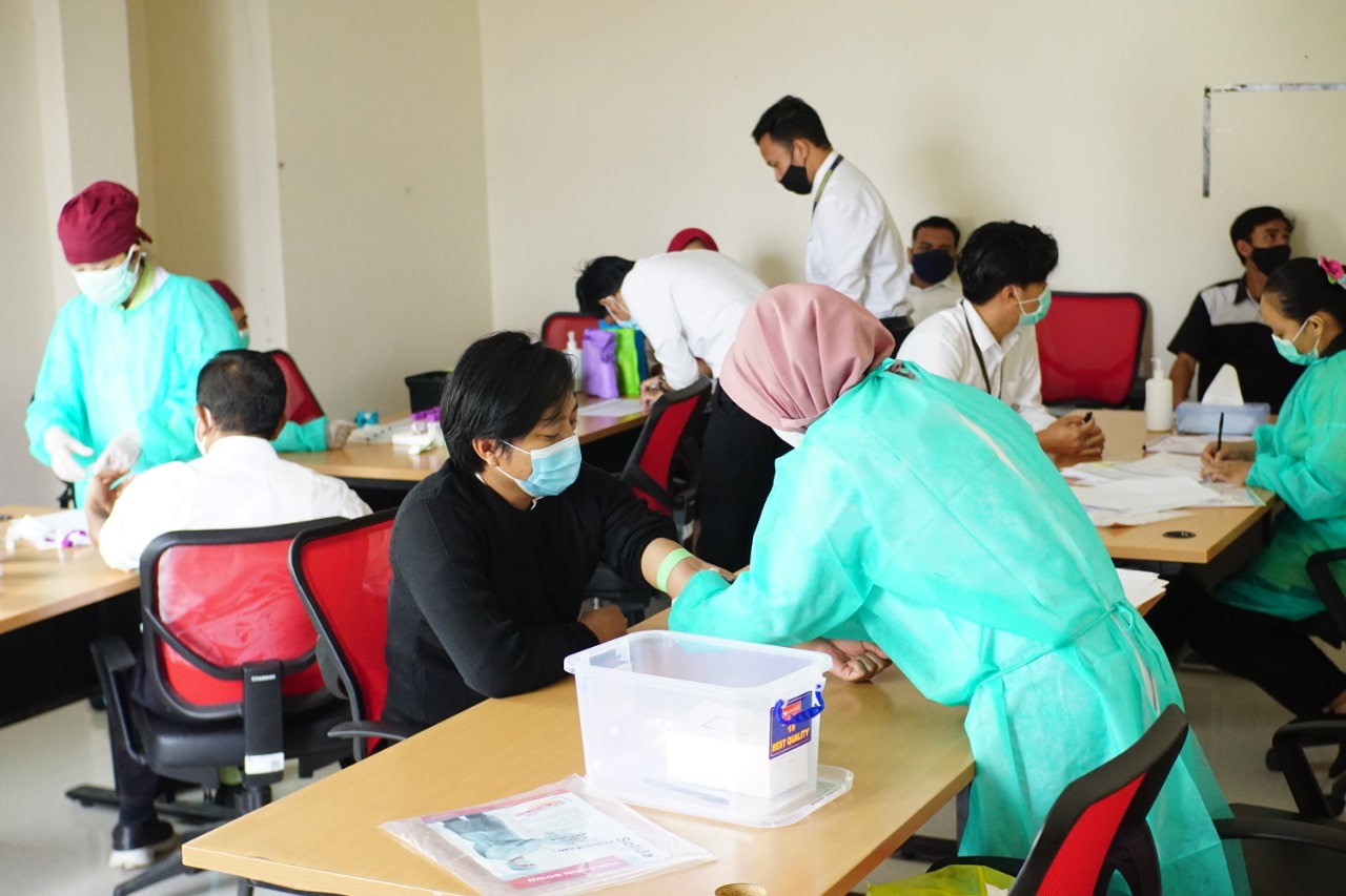 Kantor Pelayanan Pajak (KPP) Pratama Ketapang kembali mengadakan tes cepat sebagai upaya pencegahan penyebaran Virus Covid-19 di Aula Lantai 1 KPP Pratama Ketapang (Senin, 14/12). Bekerja sama dengan RS Fatimah Ketapang, KPP Pratama Ketapang telah melaksanakan tes cepat sebanyak lima kali yang dilakukan setiap bulan. Seluruh ASN maupun pegawai non PNS KPP Pratama Ketapang mengikuti tes cepat sebagai upaya pencegahan penyebaran Covid-19.