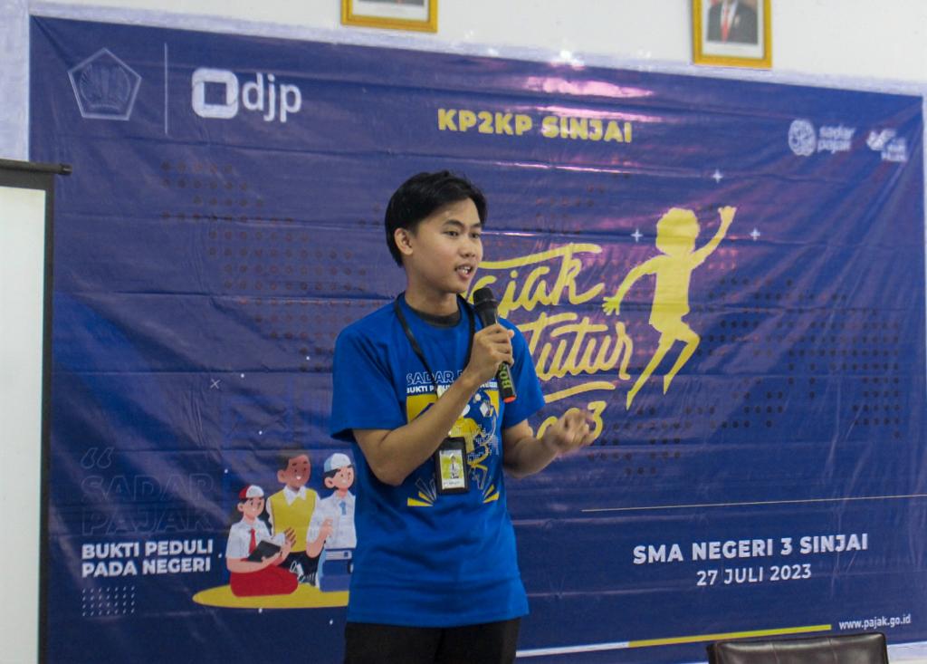 Kantor Pelayanan, Penyuluhan, dan Konsultasi Perpajakan (KP2KP) Sinjai melaksanakan kegiatan Pajak Bertutur yang dilakukan serentak di seluruh Indonesia (Kamis, 27/07). Pajak Bertutur ini rutin dilakukan setiap tahun sebagai sarana sosialisasi kesadaran pajak sejak dini yang menyasar siswa SD/SMP/SMA/Perguruan Tinggi. Tahun 2023 ini KP2KP Sinjai melaksanakan Pajak Bertutur di salah satu sekolah unggulan yaitu Sekolah Menengah Atas Negeri (SMAN) 3 Sinjai, Kelurahan Kampala, Kecamatan Sinjai Timur Kabupaten Sinjai.