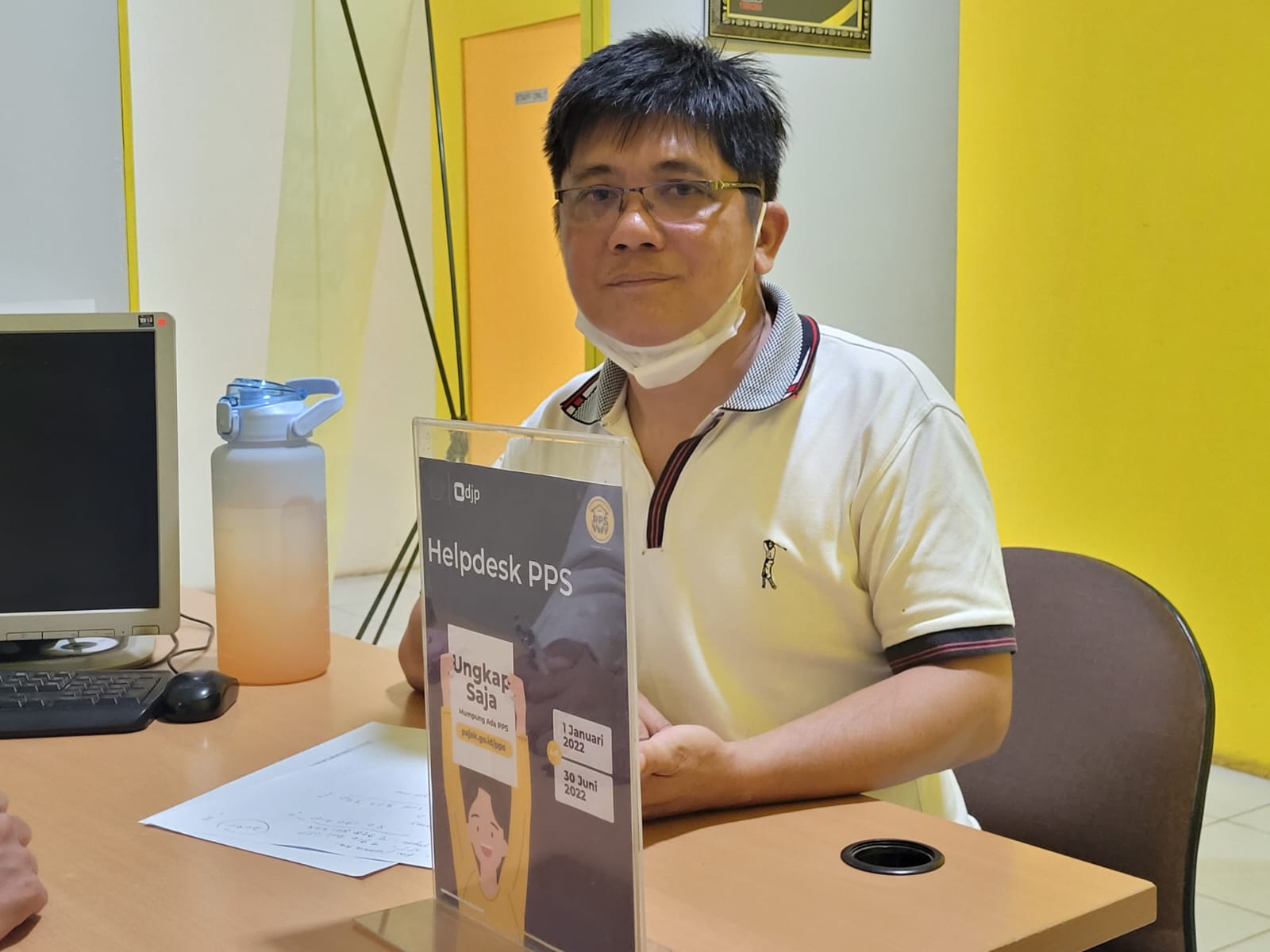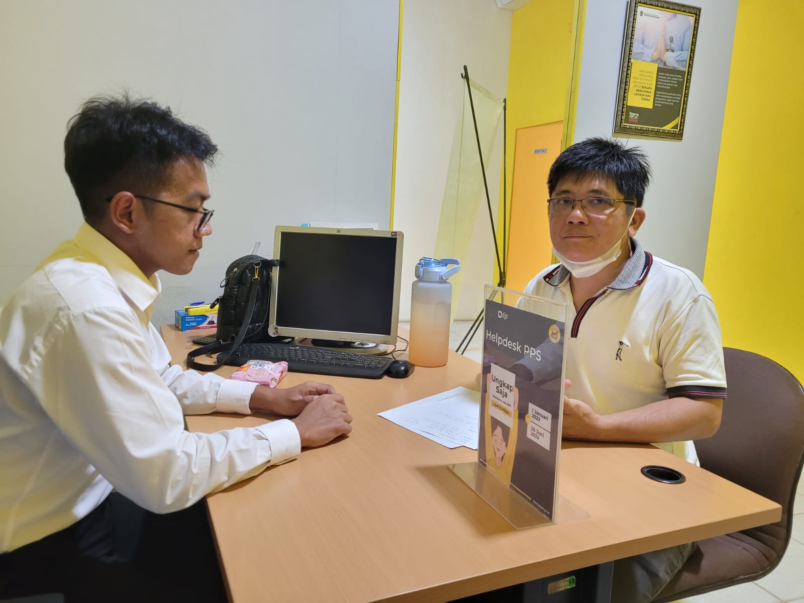 Kantor Pelayanan, Penyuluhan, dan Konsultasi Perpajakan (KP2KP) Nanga Pinoh menerima kedatangan seorang wajib pajak di KP2KP Nanga Pinoh, Kabupaten Melawi, Kalimantan Barat (Senin, 13/6). Wajib pajak tersebut menanyakan perihal imbauan mengikuti PPS yang diterima di pos elektronik miliknya. Wajib pajak meminta penjelasan petugas helpdesk KP2KP Nanga Pinoh terkait konfirmasi harta yang diterima.