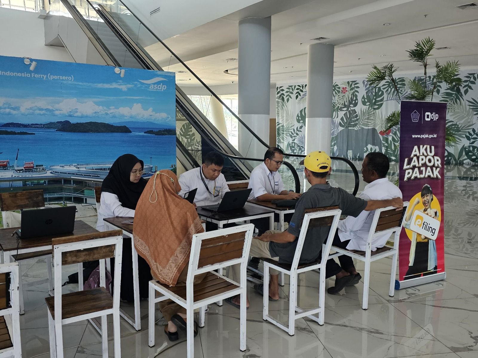 Kantor Pelayanan Pajak (KPP) Pratama Natar bekerja sama dengan Kantor Pelayanan, Penyuluhan, dan Konsultasi Perpajakan (KP2KP) Kalianda mengadakan kegiatan Pojok Pajak pengisian Surat Pemberitahuan Tahunan (SPT) Pajak Penghasilan (PPh) Orang Pribadi Tahun Pajak 2023 di Terminal Eksekutif Pelabuhan Bakauheni, Bakauheni, Lampung Selatan, Lampung (Senin, 18/3). Kegiatan ini berlangsung selama dua hari sampai dengan Selasa 19 Maret 2024 yang bertempat di Anjungan Agung Mall Bakauheni, Lampung Selatan.