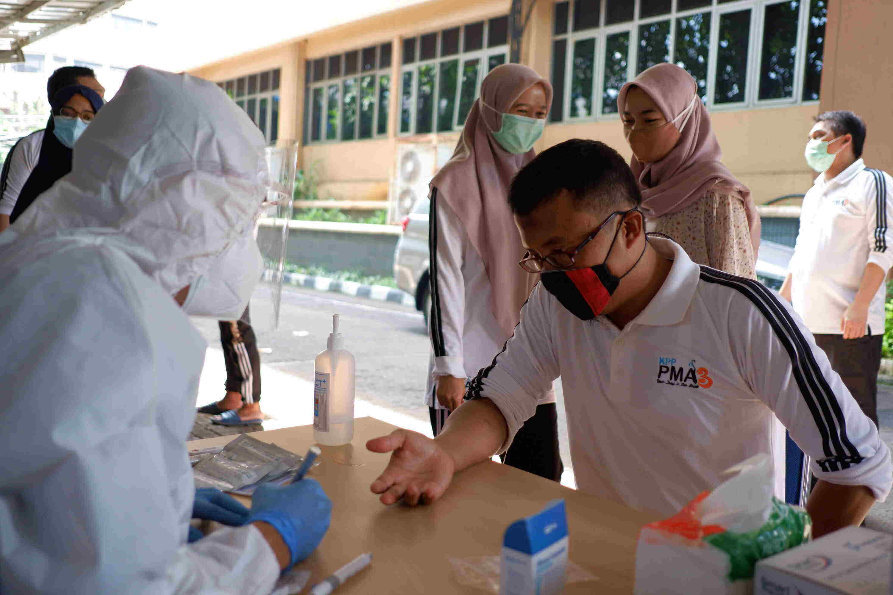 Acara ini diselenggarakan secara rutin sebagai wujud nyata KPP Penanaman Modal Asing Tiga rangka memantau kesehatan para pegawai serta dalam rangka memutus mata rantai penularan virus Covid-19.