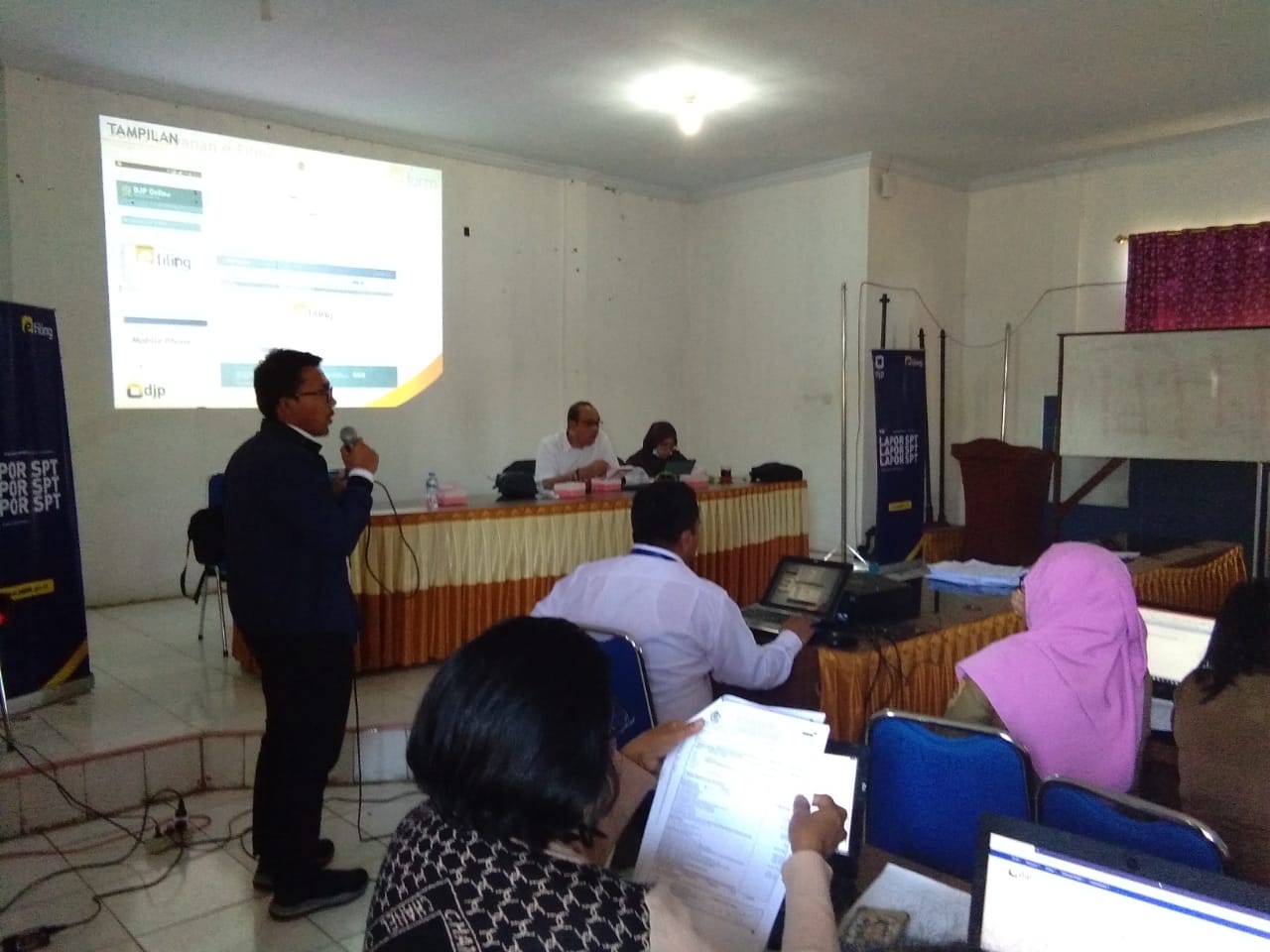 Kantor Pelayanan Pajak (KPP) Pratama Kabanjahe mengadakan Edukasi Pengisian SPT Tahunan melalui e-Filing di Aula Dinas Pendidikan Pakpak Bharat (Senin, 24/2). Peserta sosialisasi adalah ASN Dinas Pendidikan Pakpak Bharat dan perwakilan dari Sekolah TK, SD, SMP, dan SMA.