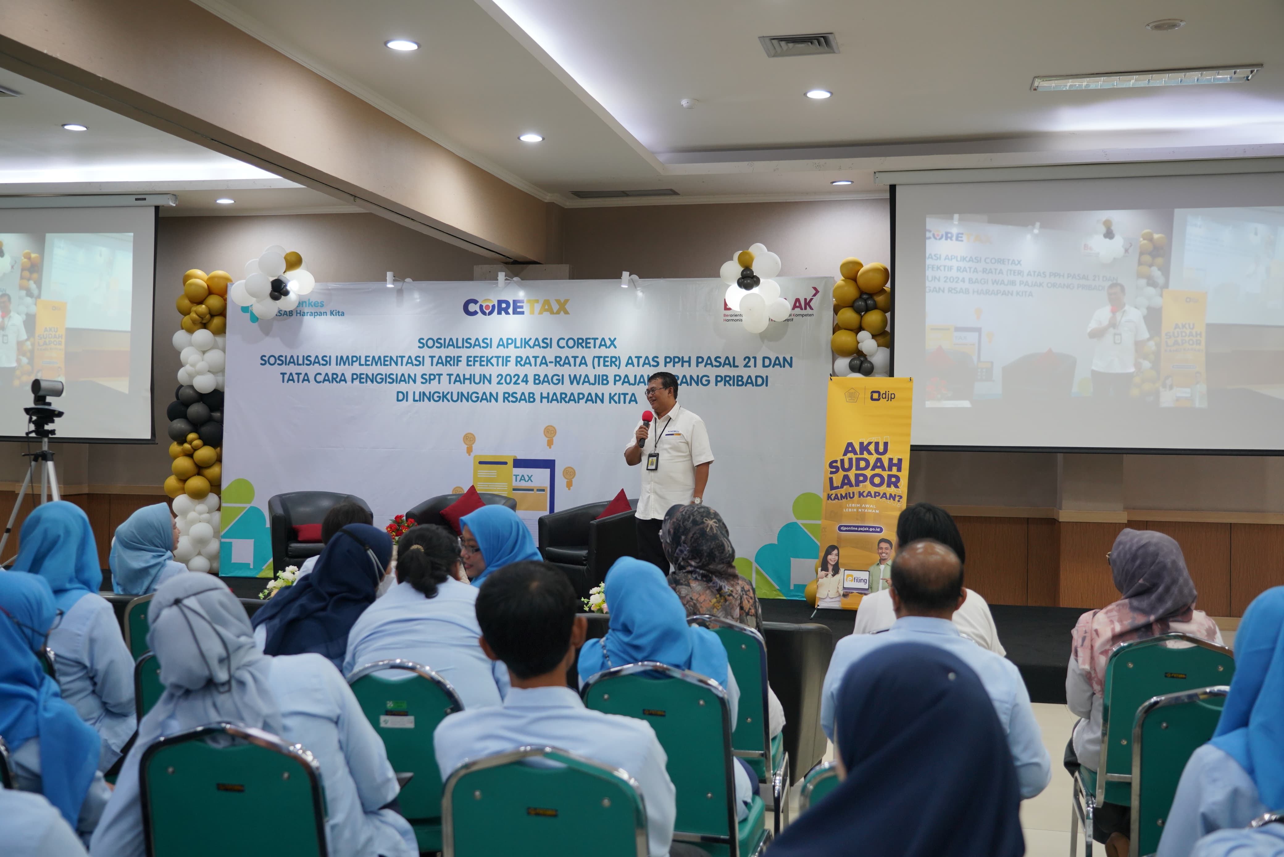 Direktur Utama RSAB Harapan Kita dr. Ockti Palupi Rahayuningtyas, MPH, MH.Kes., mengajak seluruh tenaga kesehatan RSAB Harapan Kita untuk segera melaporkan SPT Tahunan tahun pajak 2024. Ajakan ini disampaikan pada kegiatan Sosialisasi Aplikasi Coretax DJP, Implementasi Tarif Efektif Rata-Rata (TER) atas PPh 21, dan Tata Cara Pengisian SPT Tahunan Tahun Pajak 2024 bagi Wajib Pajak Orang Pribadi di lingkungan Rumah Sakit Anak & Bunda (RSAB) Harapan Kita yang bertempat di Gedung Administrasi RSAB Harapan Kita (Senin, 17/02).