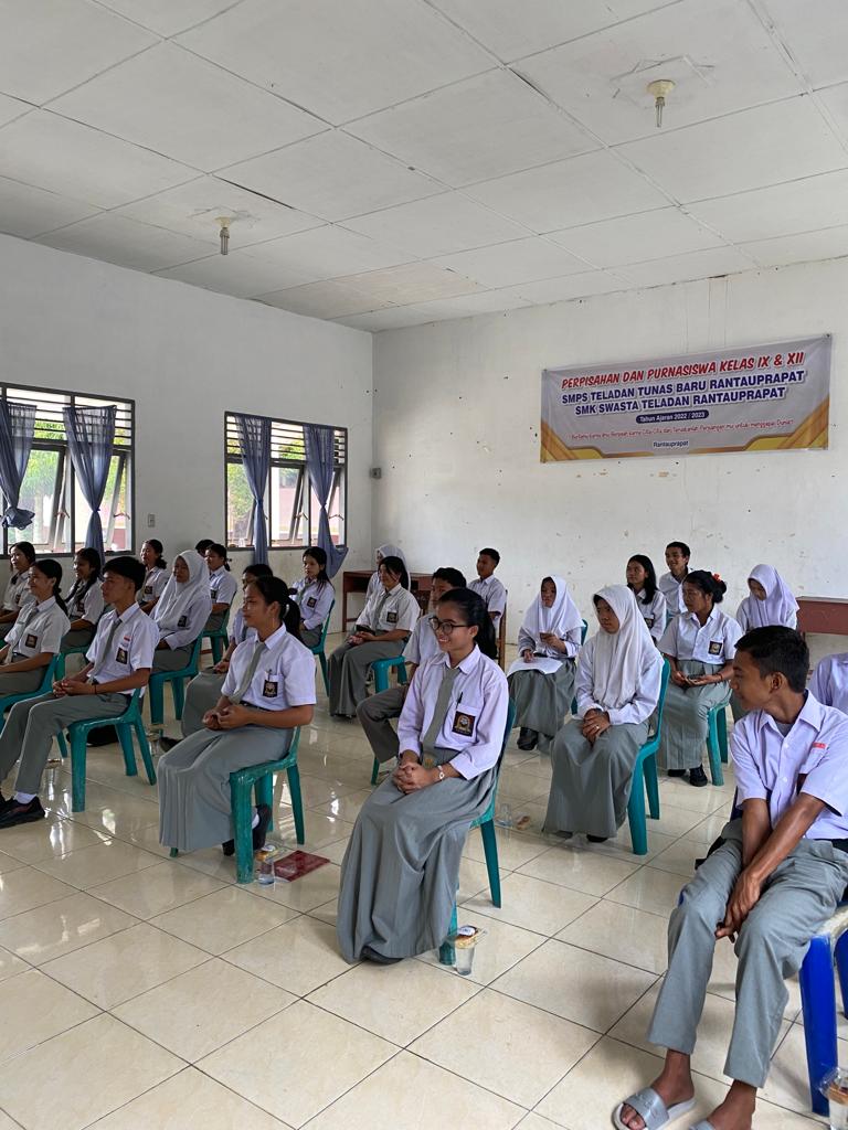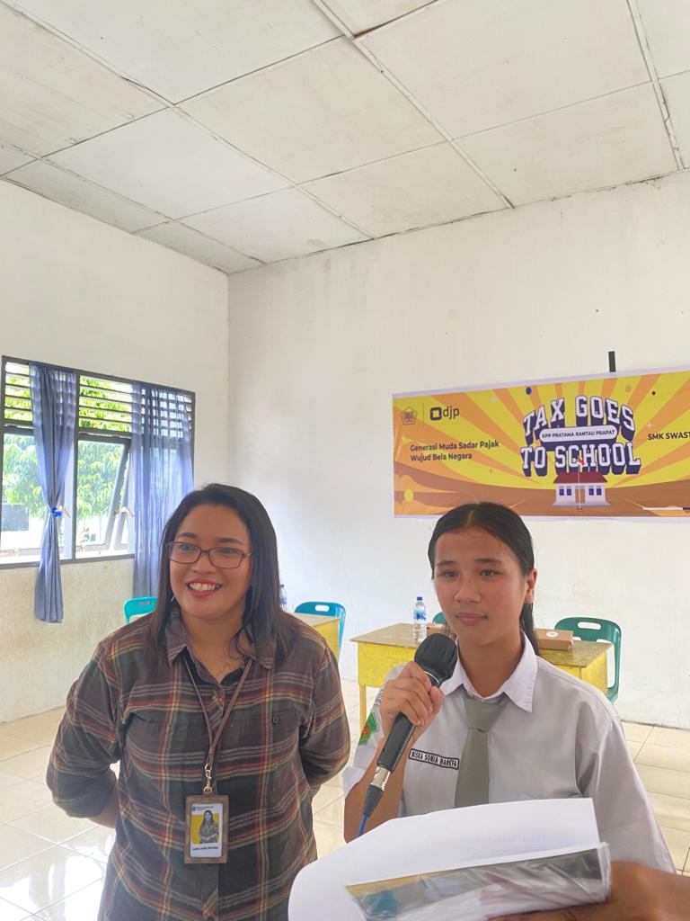 Tim Penyuluh Pajak Kantor Pelayanan Pajak (KPP) Pratama Rantau Prapat mengadakan Tax Goes To School (TGTS) kepada para siswa Sekolah Menengah Kejuruan (SMK) Swasta Teladan Rantau Prapat di Ruang Kelas SMK Swasta Teladan Rantau Prapat di Kelurahan Sioldengan, Kecamatan Rantau Selatan, Kabupaten Labuhan Batu, Sumatera Utara. Kegiatan yang diikuti oleh 40 siswa ini diisi dengan pemaparan pengenalan pajak serta games (Kamis, 20/7).