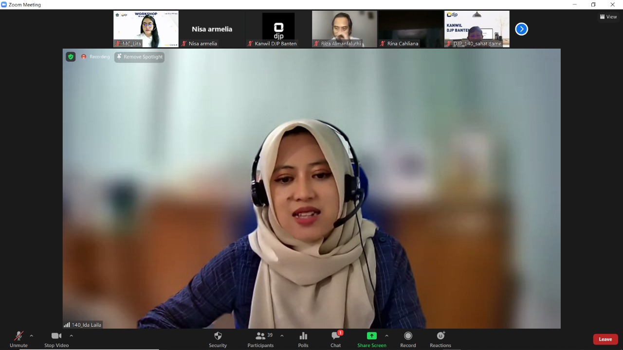 Kantor Wilayah Direktorat Jenderal Pajak (Kanwil DJP) Banten menyelenggarakan workshop khusus mahasiswa dengan tema "Menulis Kalimat yang Sangkil dan Mangkus" secara daring melalui aplikasi Zoom Cloud Meeting di Kota Serang, Banten (Kamis, 21/4).