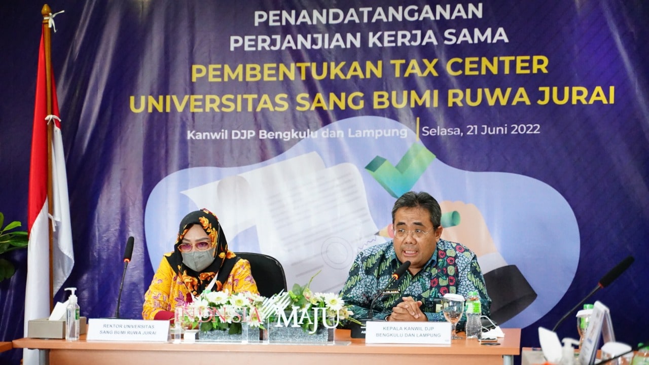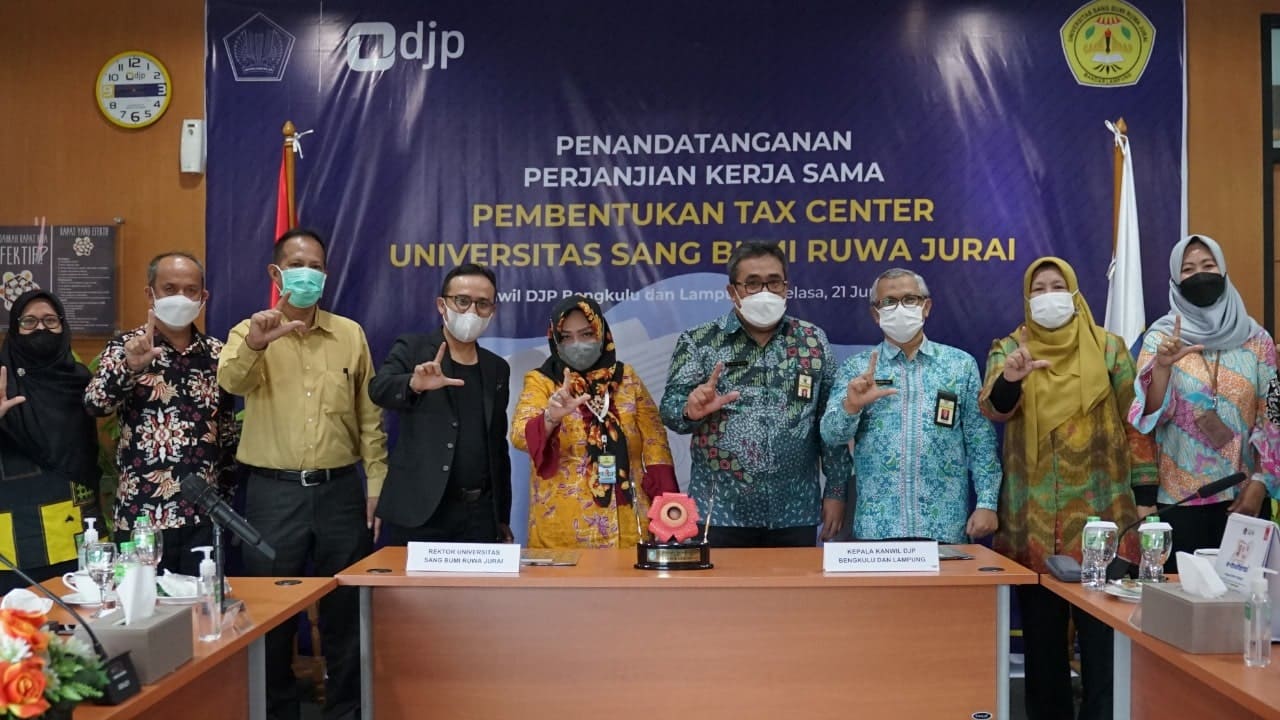 Universitas Sang Bumi Ruwa Jurai menjadi salah satu Perguruan Tinggi yang membentuk Tax Center dan ini merupakan bentuk kerja sama yang baik antara Direktorat Jenderal Pajak dan Perguruan Tinggi dalam hal meningkatkan pengetahuan dan kesadaran tentang hak dan kewajiban perpajakan civitas akademika dan masyarakat.