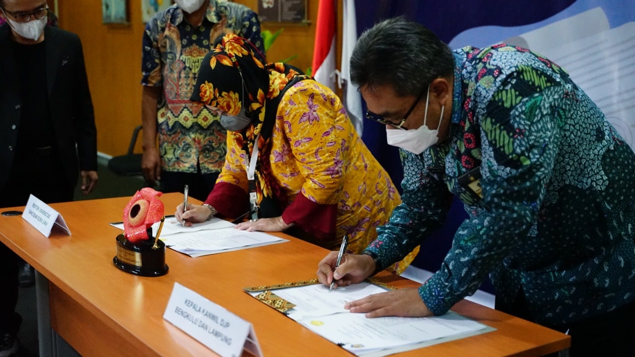 Kepala Kantor Wilayah (Kanwil) DJP Bengkulu dan Lampung Tri Bowo dan Rektor Universitas Sang Bumi Ruwa Jurai (Universitas Saburai) Lina Maulidiana melaksanakan penandatanganan Perjanjian Kerja Sama (PKS) pembentukan Tax Center Universitas Saburai (Selasa, 21/6).