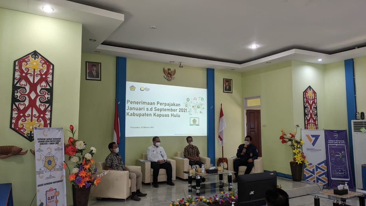 Kepala KP2KP Putussibau Ahmad Jefri Adityas Wibawa melakukan kunjungan ini ditemani dengan 2 orang pelaksana. Kunjungan ini mereka lakukan untuk mengikuti Kegiatan Rilis Kinerja APBN Triwulan III Tahun 2021 yang di adakan di Aula KPPN Putussibau. Dalam acara ini, Jefri bertugas untuk menjadi narasumber terkait penerimaan pajak sampai dengan Triwulan III Tahun 2021.