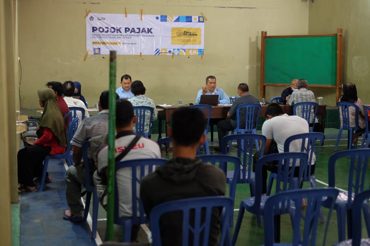 Kantor Pelayanan Pajak (KPP) Pratama Karanganyar dalam upaya meningkatkan kepatuhan wajib pajak, menggelar pojok pajak di Kelurahan Masaran, kecamatan Masaran, Kabupaten Sragen (Rabu, 08/03). Kegiatan pojok pajak dilaksanakan di ruang pertemuan Kantor Kelurahan Masaran mulai pukul 10.00 WIB dan diakhiri pukul 13.00 WIB.
