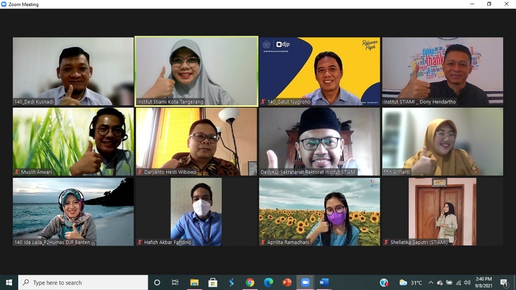 Kantor Wilayah Direktorat Jenderal Pajak (Kanwil DJP) Banten menerima audiensi secara virtual dari Jajaran Pimpinan Institut Ilmu Sosial dan Manajemen STIAMI Kampus F Tangerang sebagai tindak lanjut persiapan pendirian tax center di STIAMI melalui Zoom Meeting di Kota Serang, Banten (Rabu, 8/9).
