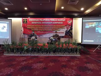 Sedangkan dua narasumber lainnya dari Kantor Pusat Kementerian Hukum dan HAM, melalui media telekonferensi, menyampaikan tentang kewajiban pelaporan pemilik manfaat oleh korporasi dan tata cara penyampaian informasi dan perubahan pemilik manfaat korporasi melalui AHU online. Setelah pemaparan dari para narasumber, dilanjutkan dengan diskusi yang disambut dengan antusias oleh para peserta.