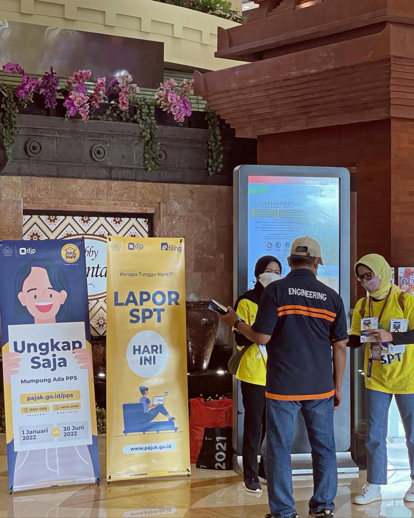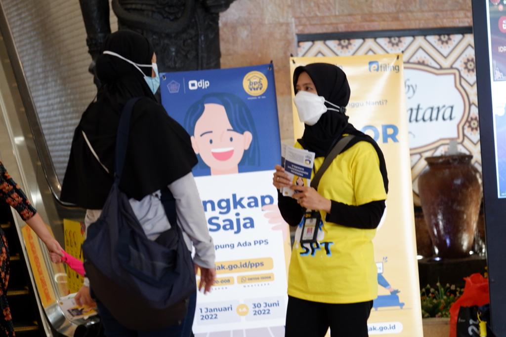 Kegiatan aksi simpatik ini berupa pembagian 4 in 1 anti bacterial kit sebanyak 75 paket sekaligus mengingatkan pengunjung untuk melaporkan SPT Tahunan PPh Orang Pribadi sebelum tanggal 31 Maret serta menginformasikan Program Pengungkapan Sukarela (PPS) yang dapat dimanfaatkan hingga 30 Juni 2022.
