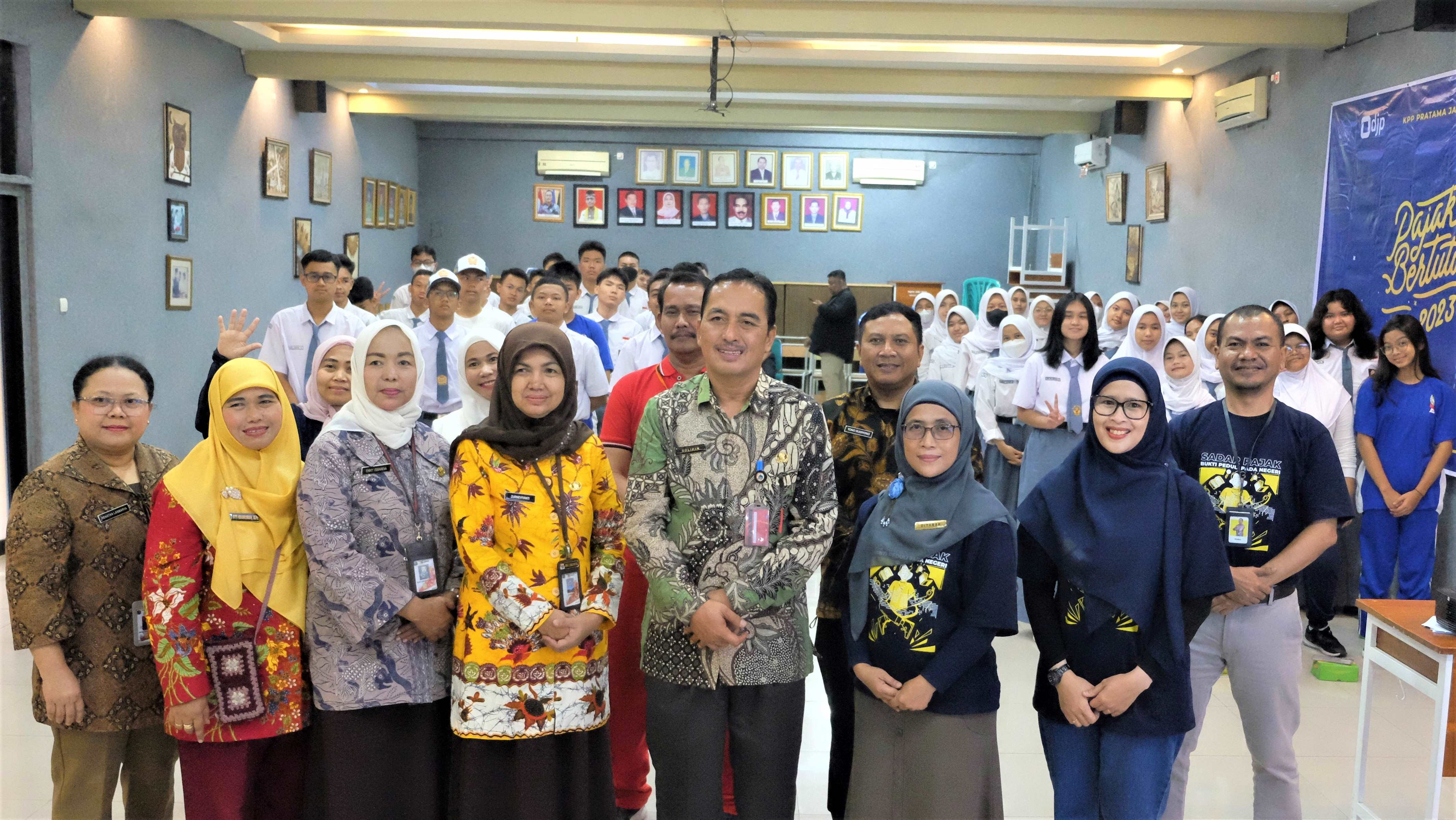 Account Representative Haisah selaku narasumber menyampaikan materi dengan tema “Generasi Sadar Pajak, Bukti Peduli Pada Negeri” kepada para murid SMAN 51 Jakarta. Dalam kesempatan tersebut, Haisah menyampaikan peranan dan manfaat pajak sebagai sumber terbesar dalam Anggaran Pendapatan dan Belanja Negara serta yang dapat dilakukan oleh para murid agar turut serta menjadi generasi sadar pajak yang dapat membangun negeri dengan cara giat belajar dan tak pernah berhenti mengejar prestasi.