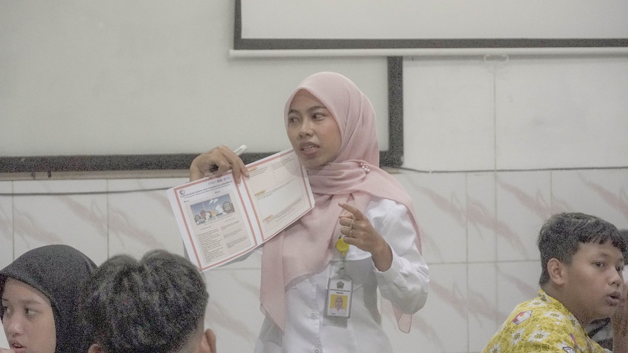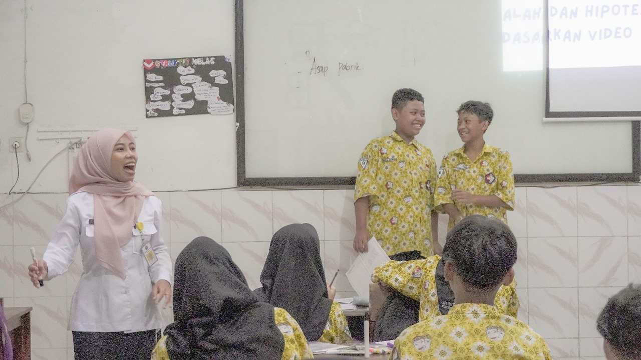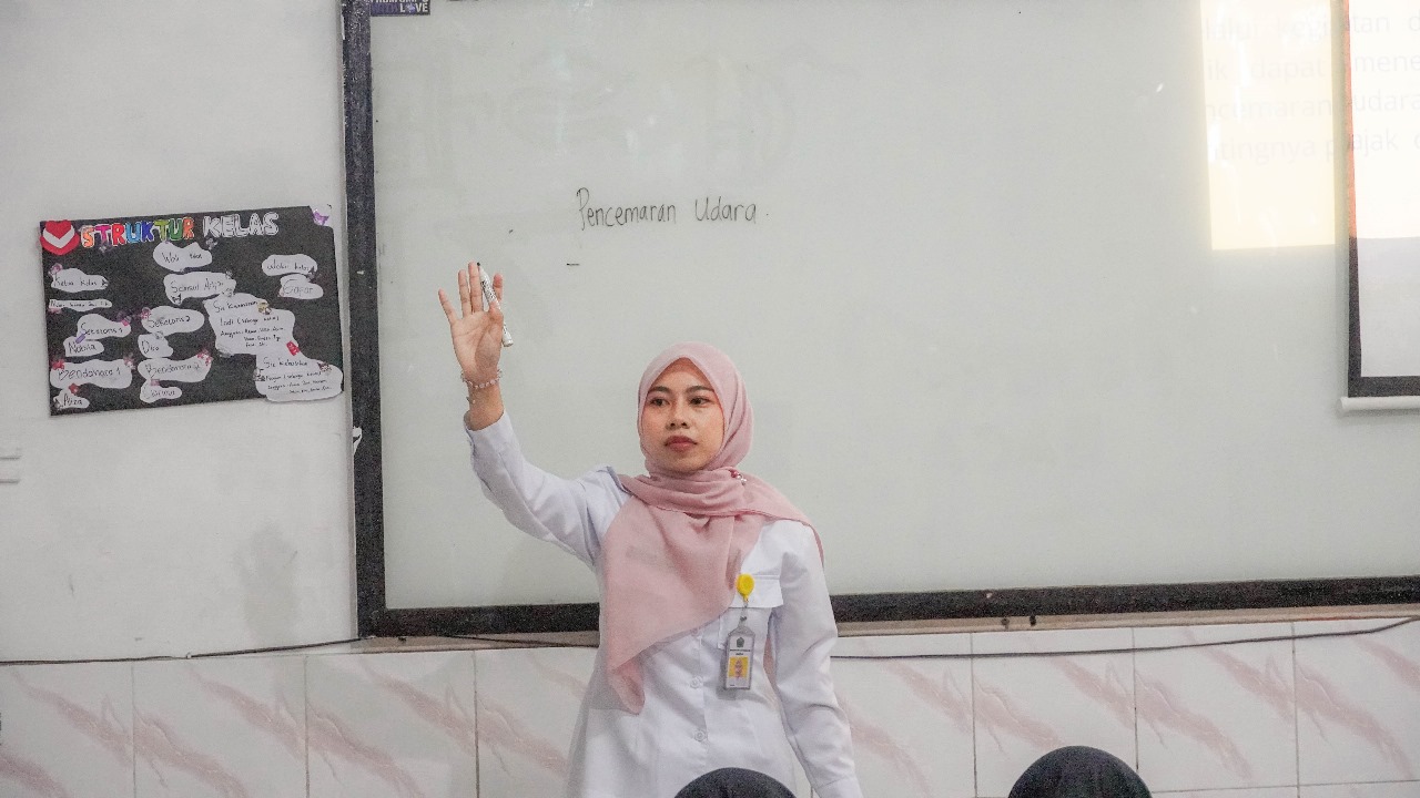 Sherly Amalia, Guru Mata Pelajaran IPA, menjelaskan penyebab dan dampak yang ditimbulkan oleh pencemaran udara, lalu menyisipkan muatan kesadaran pajak saat membahas solusi mengatasi pencemaran udara tersebut.