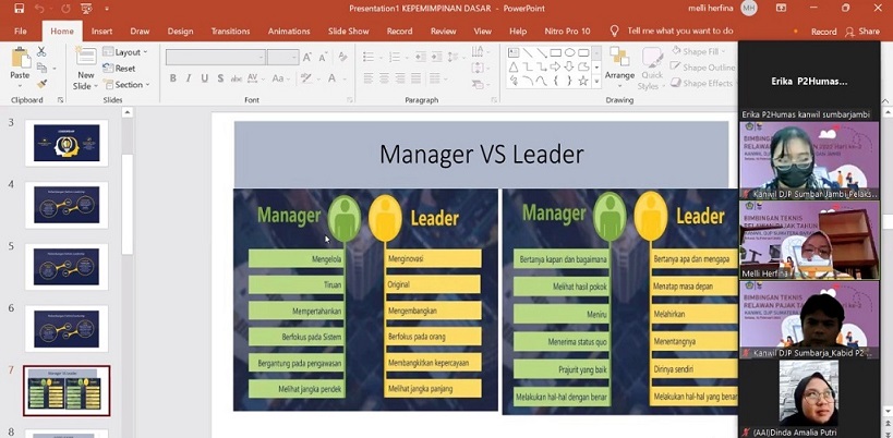 Kantor Wilayah Direktorat Jenderal Pajak (Kanwil DJP) Sumatera Barat dan Jambi memberikan Bimbingan Teknis Communication Skill dan Kepemimpinan bagi relawan pajak di wilayah Sumatera Barat dan Jambi secara daring di Padang, Sumatera Barat (Selasa, 15/02).
