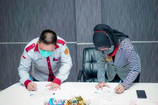 Proses penandatanganan Kesepakatan Bersama (MoU) ini dilaksanakan secara sederhana dan berjalan lancar dengan tetap memperhatikan dan menjalankan protokol kesehatan.