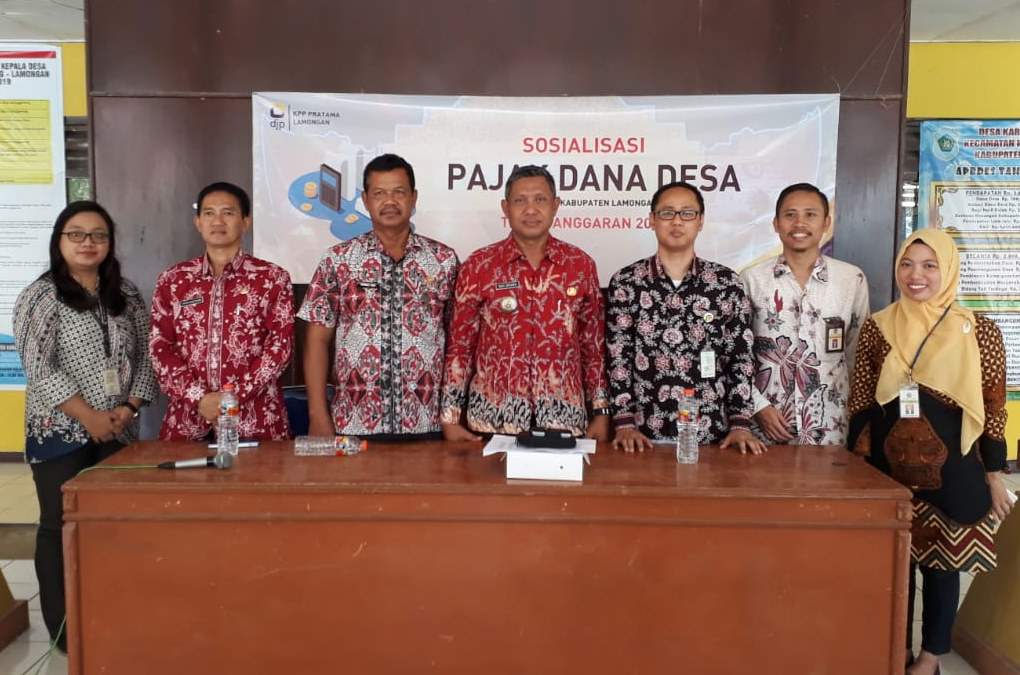 KPP Pratama Lamongan melakukan Sosialisasi Pajak Dana Desa kepada 20 desa di Kecamatan Karanggeneng, Kabupaten Lamongan (Selasa, 24/9). Program ini dilakukan KPP Pratama Lamongan bekerja sama dengan Bapenda Kabupaten Lamongan dalam rangka edukasi dan optimalisasi pengelolaan anggaran dana desa tahun 2019.